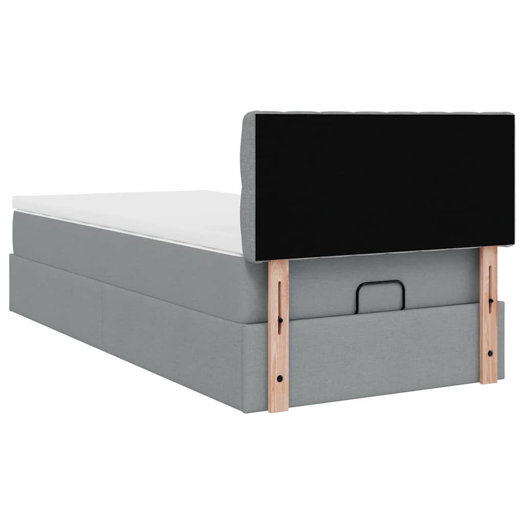Ottoman-Bett mit Matratze Hellgrau 100x200 cm Stoff