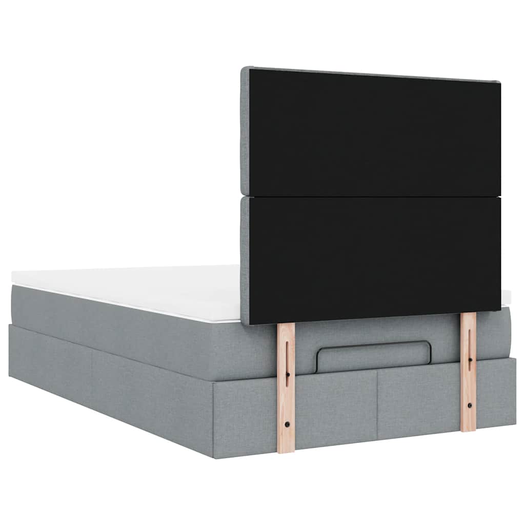 Ottoman-Bett mit Matratze & LEDs Hellgrau 120x190 cm Stoff