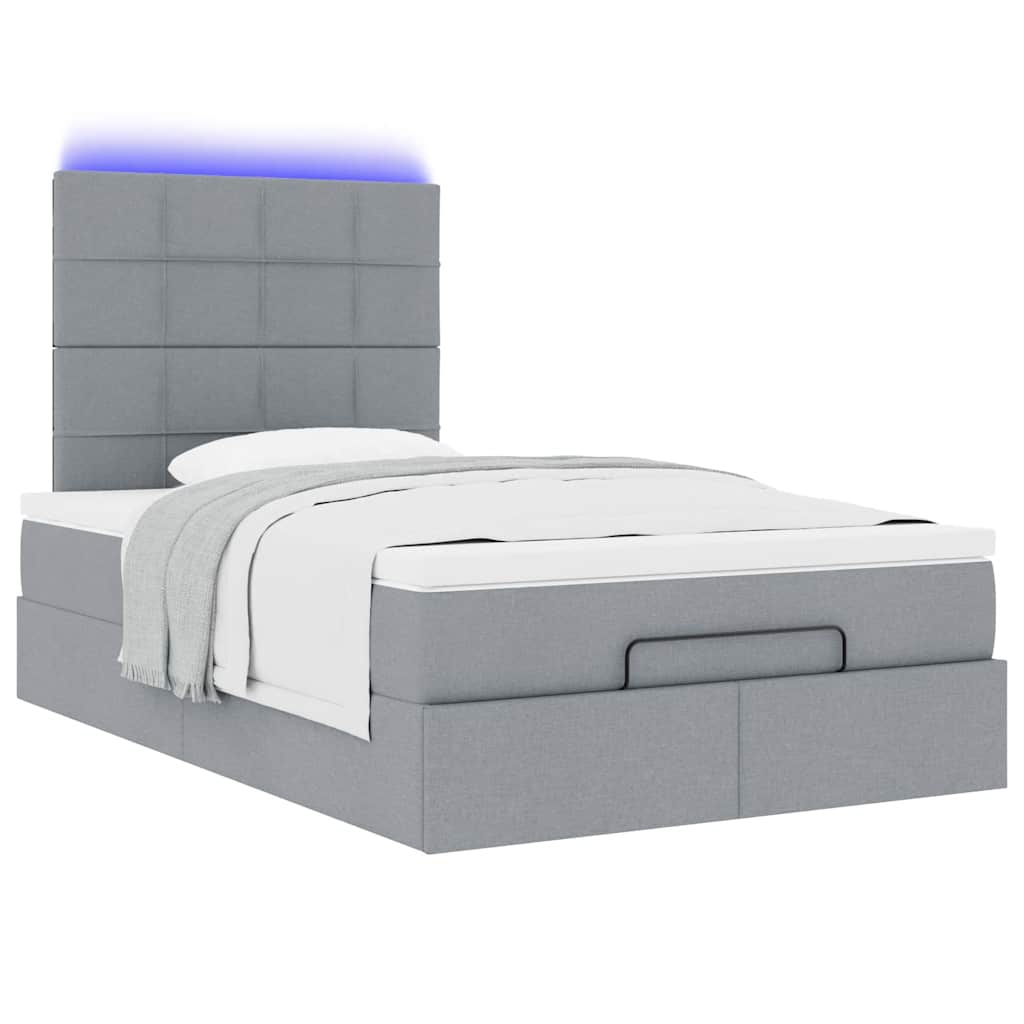 Ottoman-Bett mit Matratze & LEDs Hellgrau 120x200 cm Stoff