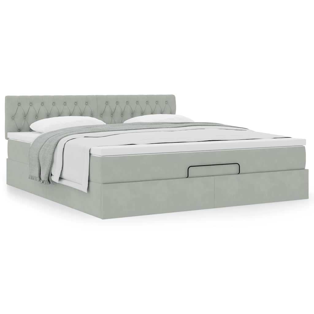 Genieße mit diesem Ottomanbett mit Matratze eine erholsame Nachtruhe! Es bietet dir sowohl eine Stauraumlösung als auch ein komfortables Schlaferlebnis. Weiches und komfortables Material: Der Samtstoff hat eine weiche und sanfte Oberfläche, die sich angenehm auf der Haut anfühlt und höchsten Komfort bietet.Taschenfederkernmatratze: Diese Matratze hat einzelne Taschenfedern, die unabhängig voneinander arbeiten. Somit bietet sie dir optimalen Halt, indem sie auf Druckstellen in jedem Bereich unabhängig reagieren. Diese Konstruktion verhindert das "Zusammenrollen" und reduziert die Bewegungsübertragung im Vergleich zu alten Federkernmatratzen. Jede Taschenfeder stützt die Körper-Druckstellen individuell.Großer Stauraum unter dem Bett: Dank des hydraulischen Hebemechanismus bietet der Bettrahmen reichlich Stauraum unter dem Bett, sodass der Platz maximiert wird, ohne zusätzliche Bodenfläche zu beanspruchen. Mit einem einfachen Zug am Griff hebt sich der Lattenrost sanft an, sodass du deine Gegenstände schnell und mühelos herausholen kannst.Komfortable Matratzenauflage: Die Auflage verbessert den Halt und den Komfort mit ihrer weichen, atmungsaktiven Oberfläche und verlängert gleichzeitig die Lebensdauer deiner Matratze. Der abnehmbare Bezug ermöglicht ein einfaches Waschen, was die Pflege der Matratze zum Kinderspiel macht. Gut zu wissen:Aus hygienischen Gründen kann die Matratze nicht zurückgegeben werden, wenn die Verpackung entfernt oder geöffnet wurde.