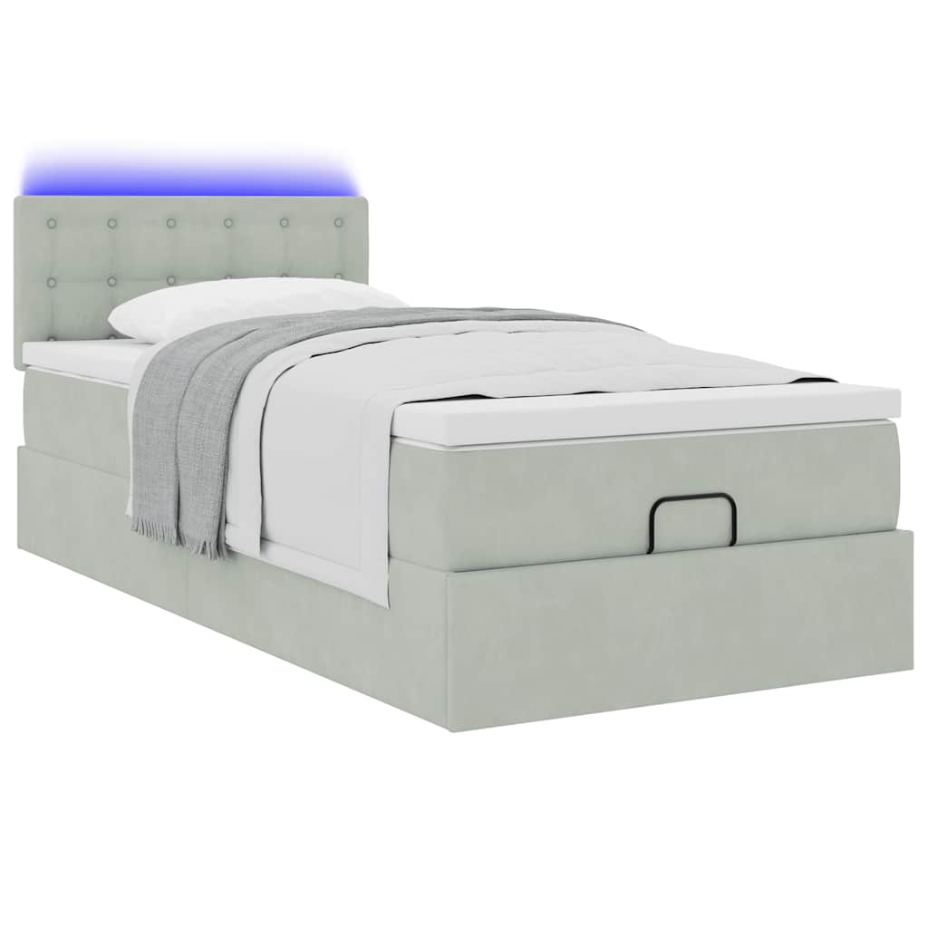 Ottoman-Bett mit Matratze & LEDs Hellgrau 80x200 cm Samt