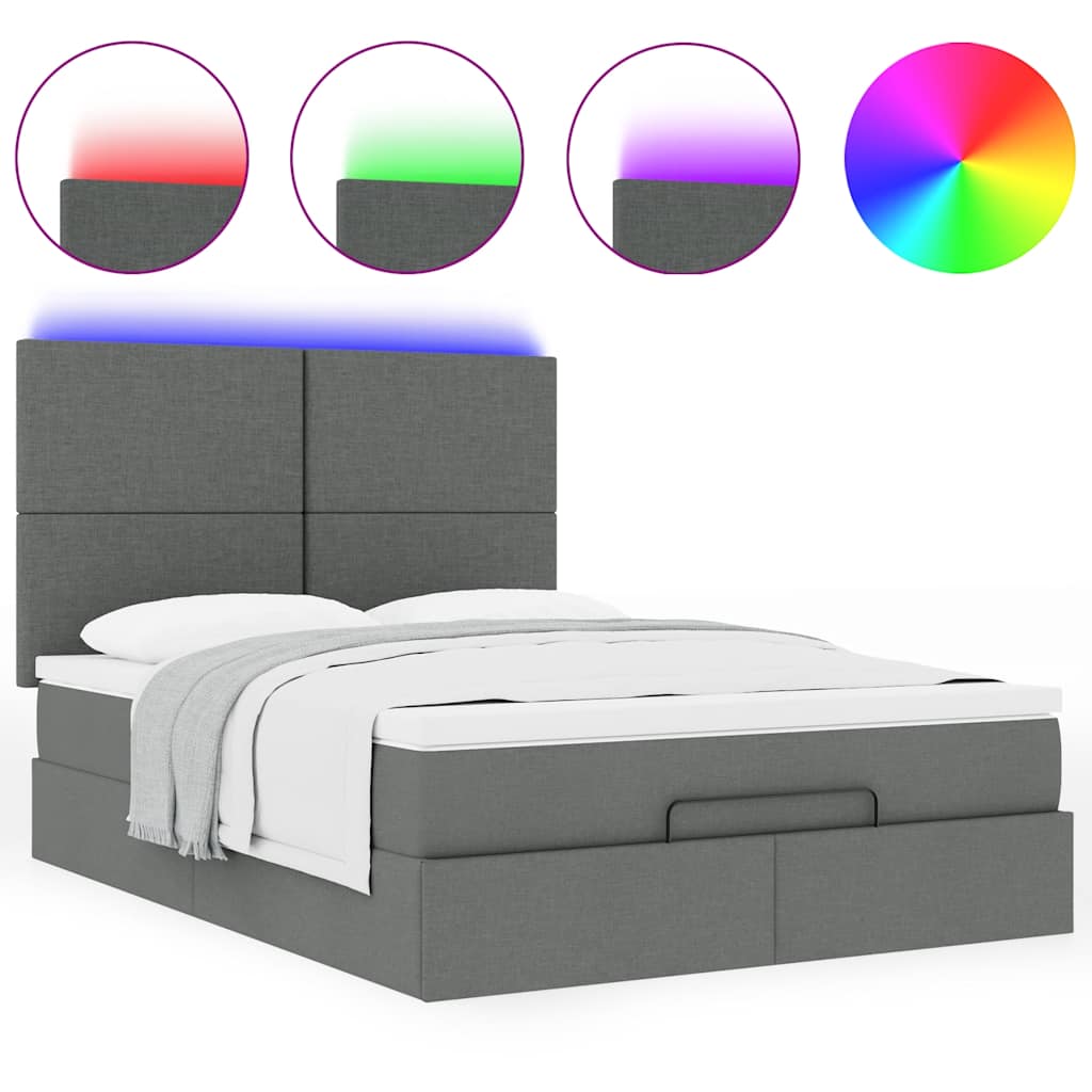 Ottoman-Bett mit Matratze & LEDs Dunkelgrau 140x190 cm Stoff