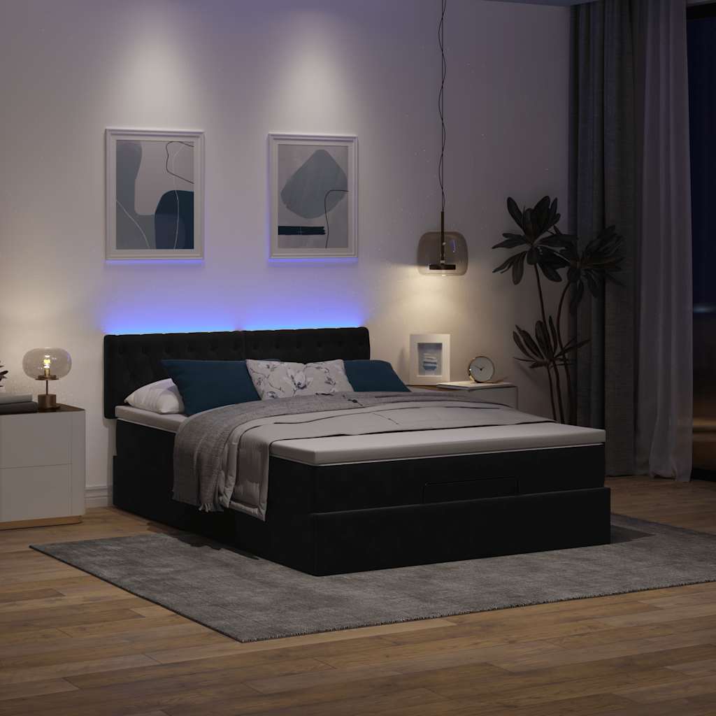 Ottoman-Bett mit Matratze & LEDs Schwarz 140x190 cm Samt