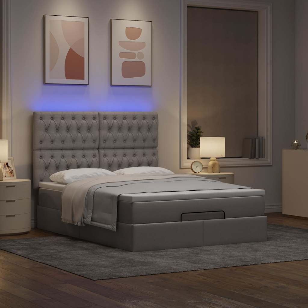 Ottoman-Bett mit Matratze & LEDs Taupe 140x190 cm Stoff