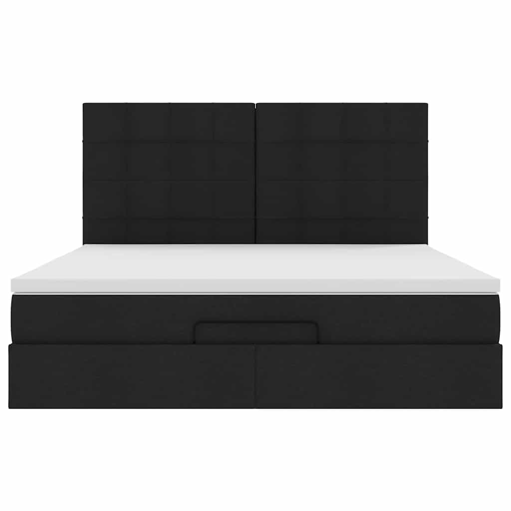 Ottoman-Bett mit Matratze & LEDs Schwarz 160x200 cm Stoff