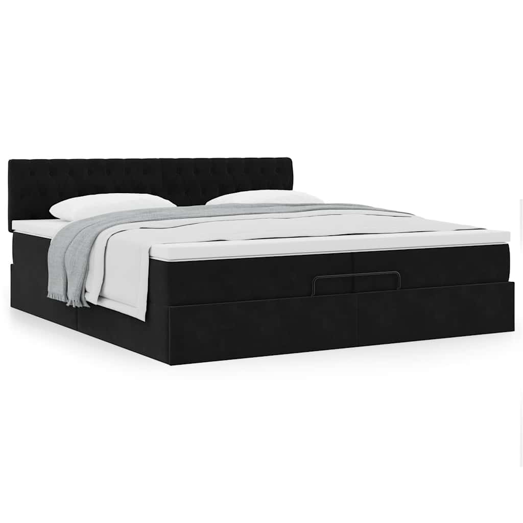 Ottoman-Bett mit Matratze Schwarz 200x200 cm Samt