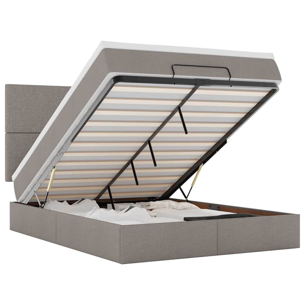 Genieße mit diesem Ottomanbett mit Matratze eine erholsame Nachtruhe! Es bietet dir sowohl eine Stauraumlösung als auch ein komfortables Schlaferlebnis. Weiches und strapazierfähiges Material: Polyestergewebe fühlt sich weich an, ist atmungsaktiv sowie strapazierfähig und sorgt so für höchsten Komfort und Behaglichkeit.Taschenfederkernmatratze: Diese Matratze hat einzelne Taschenfedern, die unabhängig voneinander arbeiten. Somit bietet sie dir optimalen Halt, indem sie auf Druckstellen in jedem Bereich unabhängig reagieren. Diese Konstruktion verhindert das "Zusammenrollen" und reduziert die Bewegungsübertragung im Vergleich zu alten Federkernmatratzen. Jede Taschenfeder stützt die Körper-Druckstellen individuell.Großer Stauraum unter dem Bett: Dank des hydraulischen Hebemechanismus bietet der Bettrahmen reichlich Stauraum unter dem Bett, sodass der Platz maximiert wird, ohne zusätzliche Bodenfläche zu beanspruchen. Mit einem einfachen Zug am Griff hebt sich der Lattenrost sanft an, sodass du deine Gegenstände schnell und mühelos herausholen kannst.Komfortable Matratzenauflage: Die Auflage verbessert den Halt und den Komfort mit ihrer weichen, atmungsaktiven Oberfläche und verlängert gleichzeitig die Lebensdauer deiner Matratze. Der abnehmbare Bezug ermöglicht ein einfaches Waschen, was die Pflege der Matratze zum Kinderspiel macht. Gut zu wissen:Aus hygienischen Gründen kann die Matratze nicht zurückgegeben werden, wenn die Verpackung entfernt oder geöffnet wurde.