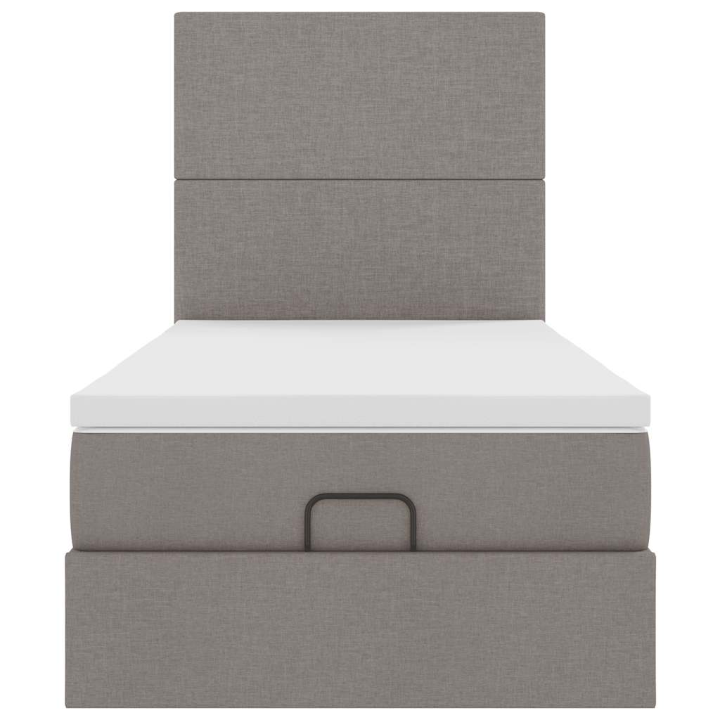 Ottomane Bett mit Matratze & LEDs Taupe 90x200 cm Stoff