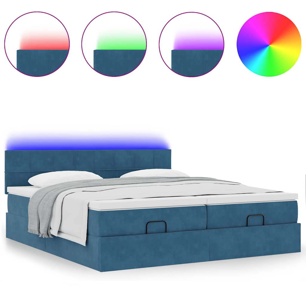 Genieße mit diesem Ottomanbett mit Matratzen eine erholsame Nachtruhe! Es bietet dir sowohl eine Stauraumlösung als auch ein komfortables Schlaferlebnis. Weiches und komfortables Material: Der Samtstoff hat eine weiche und sanfte Oberfläche, die sich angenehm auf der Haut anfühlt und höchsten Komfort bietet.Taschenfederkernmatratze: Diese Matratze hat einzelne Taschenfedern, die unabhängig voneinander arbeiten. Somit bietet sie dir optimalen Halt, indem sie auf Druckstellen in jedem Bereich unabhängig reagieren. Diese Konstruktion verhindert das "Zusammenrollen" und reduziert die Bewegungsübertragung im Vergleich zu alten Federkernmatratzen. Jede Taschenfeder stützt die Körper-Druckstellen individuell.Großer Stauraum unter dem Bett: Dank des hydraulischen Hebemechanismus bietet der Bettrahmen reichlich Stauraum unter dem Bett, sodass der Platz maximiert wird, ohne zusätzliche Bodenfläche zu beanspruchen. Mit einem einfachen Zug am Griff hebt sich der Lattenrost sanft an, sodass du deine Gegenstände schnell und mühelos herausholen kannst.Komfortable Matratzenauflage: Die Auflage verbessert den Halt und den Komfort mit ihrer weichen, atmungsaktiven Oberfläche und verlängert gleichzeitig die Lebensdauer deiner Matratze. Der abnehmbare Bezug ermöglicht ein einfaches Waschen, was die Pflege der Matratze zum Kinderspiel macht.LED-Beleuchtung für ein angenehmes Ambiente: Dieses Bett verfügt über LED-Leuchten, die einfach eingestellt werden können, um eine persönliche Lichtshow zu kreieren. Du kannst die Modi, Farben und Helligkeit anpassen, um das Ambiente in deinem Wohnraum zu verbessern. Gut zu wissen:Dieses Doppelbett besteht aus zwei Einzelbetten, sodass jeder Lattenrost unabhängig voneinander angehoben werden kann.Das Produkt verfügt über einen USB-Anschluss, für den eine zertifizierte 5V-USB-Stromquelle erforderlich ist (nicht im Lieferumfang enthalten).Aus hygienischen Gründen kann die Matratze nicht zurückgegeben werden, wenn die Verpackung entfernt oder geöffnet wurde.Nur der Teil mit dem Symbol kann geschnitten werden und nur der Teil mit dem USB funktioniert auch weiterhin.