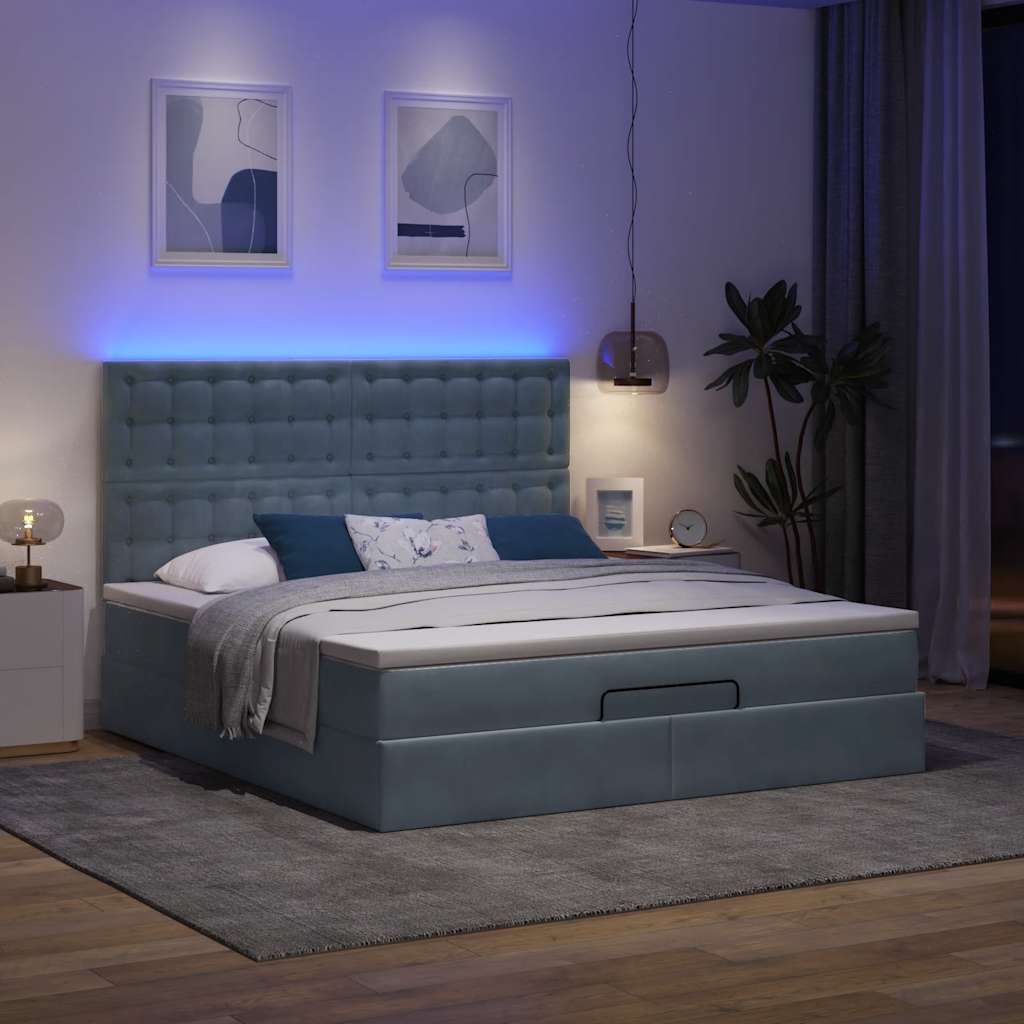 Ottoman-Bett mit Matratzen & LEDs Dunkelgrau 180x200 cm Samt