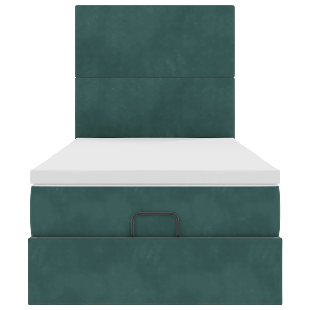 Ottoman-Bett mit Matratzen & LEDs Dunkelgrün 100x200 cm Samt