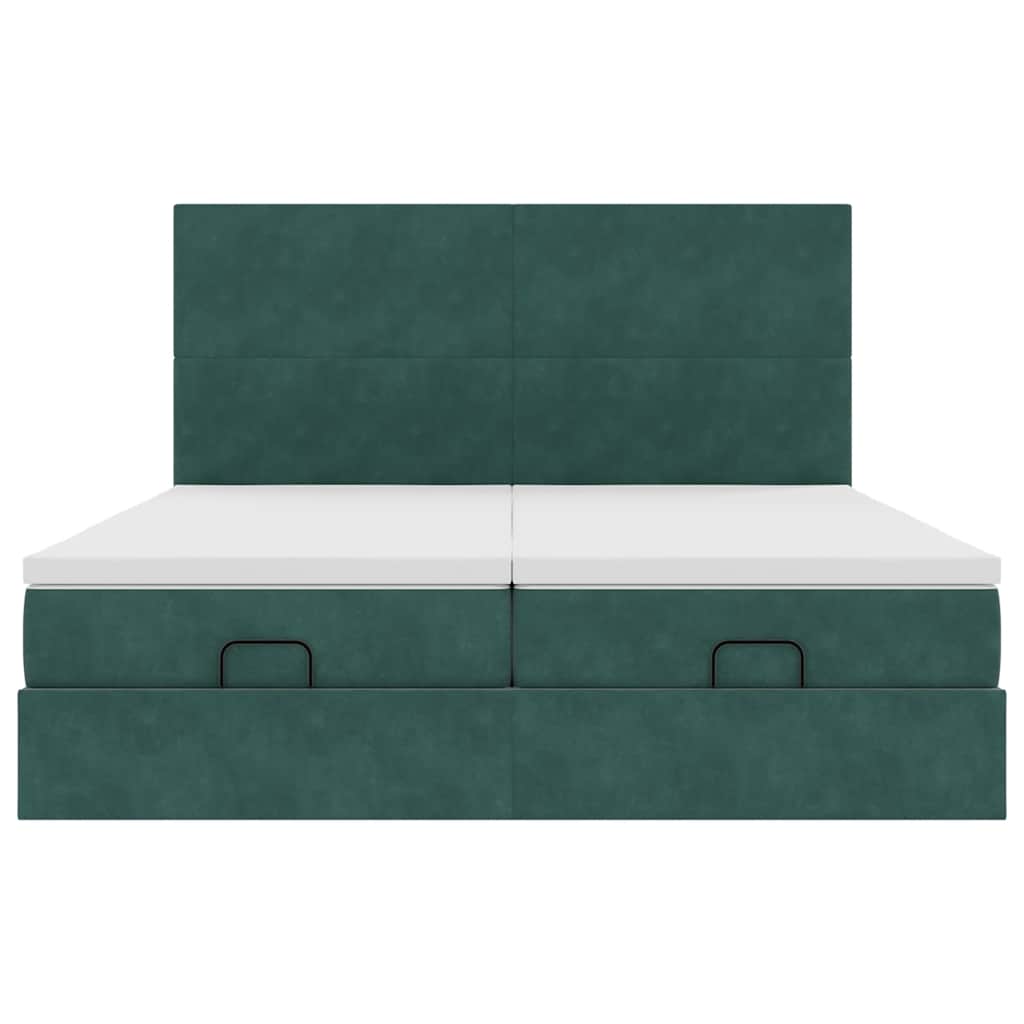 Ottoman-Bett mit Matratzen & LEDs Dunkelgrün 180x200 cm Samt
