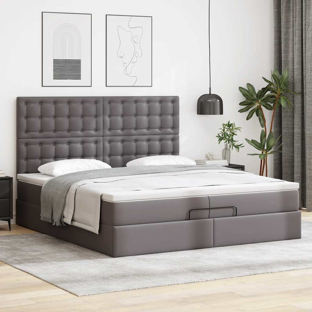 Genieße mit diesem Ottomanbett mit Matratzen eine erholsame Nachtruhe! Es bietet dir sowohl eine Stauraumlösung als auch ein komfortables Schlaferlebnis. Langlebig und pflegeleicht: Kunstleder ist ein äußerst langlebiges und schmutzabweisendes Material, das sich mit einem feuchten Tuch leicht reinigen lässt. Durch die glatte Oberfläche weist es die Eleganz von Echtleder auf.Taschenfederkernmatratze: Diese Matratze hat einzelne Taschenfedern, die unabhängig voneinander arbeiten. Somit bietet sie dir optimalen Halt, indem sie auf Druckstellen in jedem Bereich unabhängig reagieren. Diese Konstruktion verhindert das "Zusammenrollen" und reduziert die Bewegungsübertragung im Vergleich zu alten Federkernmatratzen. Jede Taschenfeder stützt die Körper-Druckstellen individuell.Großer Stauraum unter dem Bett: Dank des hydraulischen Hebemechanismus bietet der Bettrahmen reichlich Stauraum unter dem Bett, sodass der Platz maximiert wird, ohne zusätzliche Bodenfläche zu beanspruchen. Mit einem einfachen Zug am Griff hebt sich der Lattenrost sanft an, sodass du deine Gegenstände schnell und mühelos herausholen kannst.Komfortable Matratzenauflage: Die Auflage verbessert den Halt und den Komfort mit ihrer weichen, atmungsaktiven Oberfläche und verlängert gleichzeitig die Lebensdauer deiner Matratze. Der abnehmbare Bezug ermöglicht ein einfaches Waschen, was die Pflege der Matratze zum Kinderspiel macht.LED-Beleuchtung für ein angenehmes Ambiente: Dieses Bett verfügt über LED-Leuchten, die einfach eingestellt werden können, um eine persönliche Lichtshow zu kreieren. Du kannst die Modi, Farben und Helligkeit anpassen, um das Ambiente in deinem Wohnraum zu verbessern. Gut zu wissen:Das Produkt verfügt über einen USB-Anschluss, für den eine zertifizierte 5V-USB-Stromquelle erforderlich ist (nicht im Lieferumfang enthalten).Aus hygienischen Gründen kann die Matratze nicht zurückgegeben werden, wenn die Verpackung entfernt oder geöffnet wurde.Nur der Teil mit dem Symbol kann geschnitten werden und nur der Teil mit dem USB funktioniert auch weiterhin.