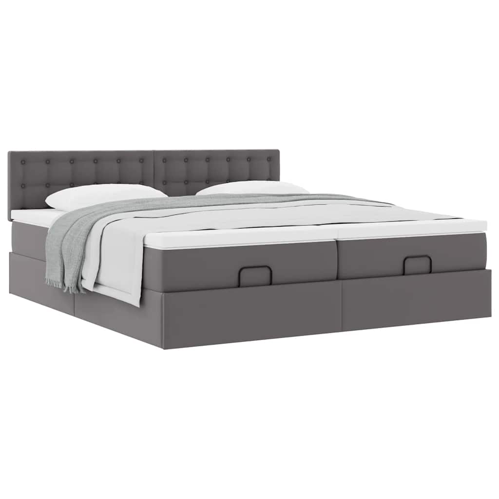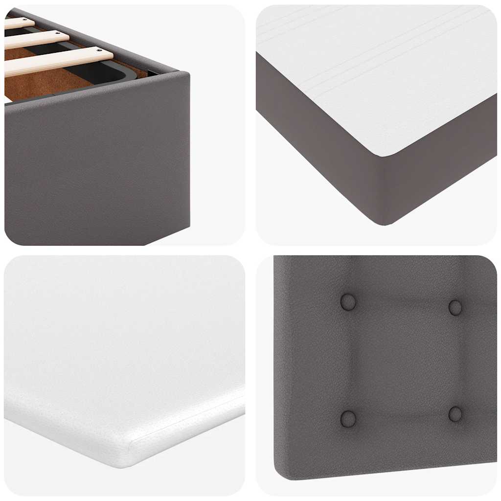 Genieße mit diesem Ottomanbett mit Matratze eine erholsame Nachtruhe! Es bietet dir sowohl eine Stauraumlösung als auch ein komfortables Schlaferlebnis. Langlebig und pflegeleicht: Kunstleder ist ein äußerst langlebiges und schmutzabweisendes Material, das sich mit einem feuchten Tuch leicht reinigen lässt. Durch die glatte Oberfläche weist es die Eleganz von Echtleder auf.Taschenfederkernmatratze: Diese Matratze hat einzelne Taschenfedern, die unabhängig voneinander arbeiten. Somit bietet sie dir optimalen Halt, indem sie auf Druckstellen in jedem Bereich unabhängig reagieren. Diese Konstruktion verhindert das "Zusammenrollen" und reduziert die Bewegungsübertragung im Vergleich zu alten Federkernmatratzen. Jede Taschenfeder stützt die Körper-Druckstellen individuell.Großer Stauraum unter dem Bett: Dank des hydraulischen Hebemechanismus bietet der Bettrahmen reichlich Stauraum unter dem Bett, sodass der Platz maximiert wird, ohne zusätzliche Bodenfläche zu beanspruchen. Mit einem einfachen Zug am Griff hebt sich der Lattenrost sanft an, sodass du deine Gegenstände schnell und mühelos herausholen kannst.Komfortable Matratzenauflage: Die Auflage verbessert den Halt und den Komfort mit ihrer weichen, atmungsaktiven Oberfläche und verlängert gleichzeitig die Lebensdauer deiner Matratze. Der abnehmbare Bezug ermöglicht ein einfaches Waschen, was die Pflege der Matratze zum Kinderspiel macht. Gut zu wissen:Dieses Doppelbett besteht aus zwei Einzelbetten, sodass jeder Lattenrost unabhängig voneinander angehoben werden kann.Aus hygienischen Gründen kann die Matratze nicht zurückgegeben werden, wenn die Verpackung entfernt oder geöffnet wurde.