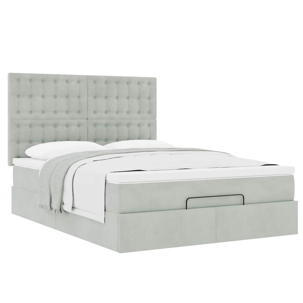 Genieße mit diesem Ottomanbett mit Matratzen eine erholsame Nachtruhe! Es bietet dir sowohl eine Stauraumlösung als auch ein komfortables Schlaferlebnis. Weiches und komfortables Material: Der Samtstoff hat eine weiche und sanfte Oberfläche, die sich angenehm auf der Haut anfühlt und höchsten Komfort bietet.Taschenfederkernmatratze: Diese Matratze hat einzelne Taschenfedern, die unabhängig voneinander arbeiten. Somit bietet sie dir optimalen Halt, indem sie auf Druckstellen in jedem Bereich unabhängig reagieren. Diese Konstruktion verhindert das "Zusammenrollen" und reduziert die Bewegungsübertragung im Vergleich zu alten Federkernmatratzen. Jede Taschenfeder stützt die Körper-Druckstellen individuell.Großer Stauraum unter dem Bett: Dank des hydraulischen Hebemechanismus bietet der Bettrahmen reichlich Stauraum unter dem Bett, sodass der Platz maximiert wird, ohne zusätzliche Bodenfläche zu beanspruchen. Mit einem einfachen Zug am Griff hebt sich der Lattenrost sanft an, sodass du deine Gegenstände schnell und mühelos herausholen kannst.Komfortable Matratzenauflage: Die Auflage verbessert den Halt und den Komfort mit ihrer weichen, atmungsaktiven Oberfläche und verlängert gleichzeitig die Lebensdauer deiner Matratze. Der abnehmbare Bezug ermöglicht ein einfaches Waschen, was die Pflege der Matratze zum Kinderspiel macht. Gut zu wissen:Aus hygienischen Gründen kann die Matratze nicht zurückgegeben werden, wenn die Verpackung entfernt oder geöffnet wurde.