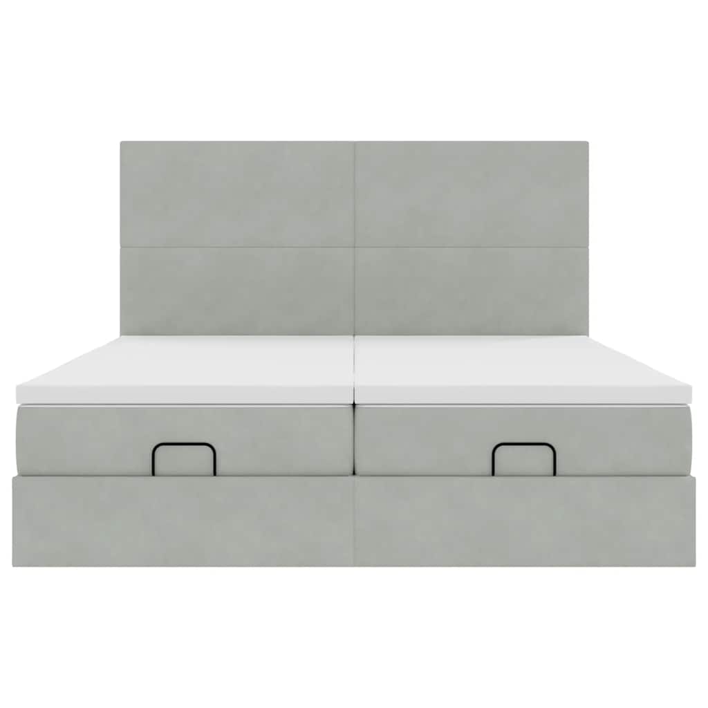 Genieße mit diesem Ottomanbett mit Matratzen eine erholsame Nachtruhe! Es bietet dir sowohl eine Stauraumlösung als auch ein komfortables Schlaferlebnis.Weiches und komfortables Material: Der Samtstoff hat eine weiche und sanfte Oberfläche, die sich angenehm auf der Haut anfühlt und höchsten Komfort bietet.Taschenfederkernmatratze: Diese Matratze hat einzelne Taschenfedern, die unabhängig voneinander arbeiten. Somit bietet sie dir optimalen Halt, indem sie auf Druckstellen in jedem Bereich unabhängig reagieren. Diese Konstruktion verhindert das "Zusammenrollen" und reduziert die Bewegungsübertragung im Vergleich zu alten Federkernmatratzen. Jede Taschenfeder stützt die Körper-Druckstellen individuell.Großer Stauraum unter dem Bett: Dank des hydraulischen Hebemechanismus bietet der Bettrahmen reichlich Stauraum unter dem Bett, sodass der Platz maximiert wird, ohne zusätzliche Bodenfläche zu beanspruchen. Mit einem einfachen Zug am Griff hebt sich der Lattenrost sanft an, sodass du deine Gegenstände schnell und mühelos herausholen kannst.Komfortable Matratzenauflage: Die Auflage verbessert den Halt und den Komfort mit ihrer weichen, atmungsaktiven Oberfläche und verlängert gleichzeitig die Lebensdauer deiner Matratze. Der abnehmbare Bezug ermöglicht ein einfaches Waschen, was die Pflege der Matratze zum Kinderspiel macht.LED-Beleuchtung für ein angenehmes Ambiente: Dieses Bett verfügt über LED-Leuchten, die einfach eingestellt werden können, um eine persönliche Lichtshow zu kreieren. Du kannst die Modi, Farben und Helligkeit anpassen, um das Ambiente in deinem Wohnraum zu verbessern. Gut zu wissen:Dieses Doppelbett besteht aus zwei Einzelbetten, sodass jeder Lattenrost unabhängig voneinander angehoben werden kann.Das Produkt verfügt über einen USB-Anschluss, für den eine zertifizierte 5V-USB-Stromquelle erforderlich ist (nicht im Lieferumfang enthalten).Aus hygienischen Gründen kann die Matratze nicht zurückgegeben werden, wenn die Verpackung entfernt oder geöffnet wurde.Nur der Teil mit dem Symbol kann geschnitten werden und nur der Teil mit dem USB funktioniert auch weiterhin.