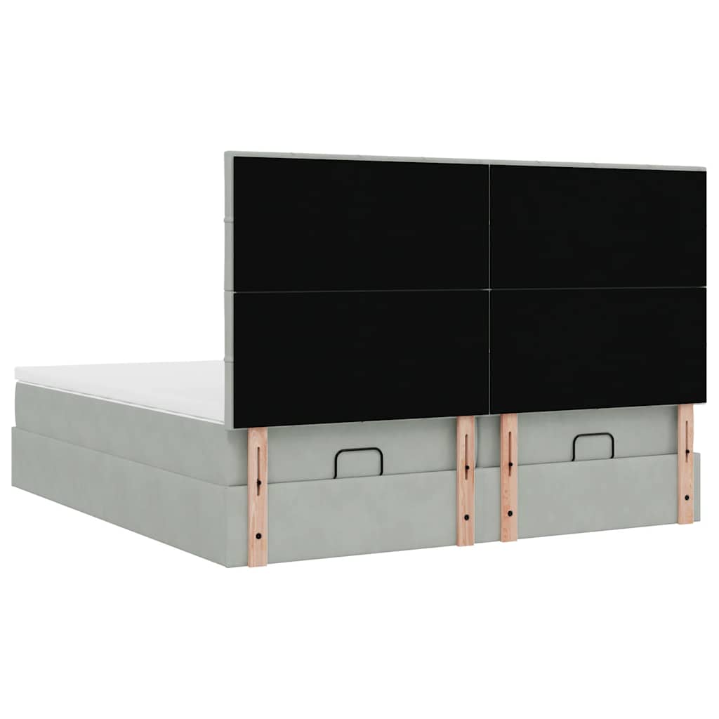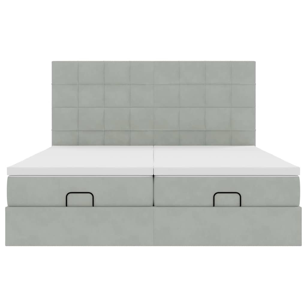 Genieße mit diesem Ottomanbett mit Matratzen eine erholsame Nachtruhe! Es bietet dir sowohl eine Stauraumlösung als auch ein komfortables Schlaferlebnis.Weiches und komfortables Material: Der Samtstoff hat eine weiche und sanfte Oberfläche, die sich angenehm auf der Haut anfühlt und höchsten Komfort bietet.Taschenfederkernmatratze: Diese Matratze hat einzelne Taschenfedern, die unabhängig voneinander arbeiten. Somit bietet sie dir optimalen Halt, indem sie auf Druckstellen in jedem Bereich unabhängig reagieren. Diese Konstruktion verhindert das "Zusammenrollen" und reduziert die Bewegungsübertragung im Vergleich zu alten Federkernmatratzen. Jede Taschenfeder stützt die Körper-Druckstellen individuell.Großer Stauraum unter dem Bett: Dank des hydraulischen Hebemechanismus bietet der Bettrahmen reichlich Stauraum unter dem Bett, sodass der Platz maximiert wird, ohne zusätzliche Bodenfläche zu beanspruchen. Mit einem einfachen Zug am Griff hebt sich der Lattenrost sanft an, sodass du deine Gegenstände schnell und mühelos herausholen kannst.Komfortable Matratzenauflage: Die Auflage verbessert den Halt und den Komfort mit ihrer weichen, atmungsaktiven Oberfläche und verlängert gleichzeitig die Lebensdauer deiner Matratze. Der abnehmbare Bezug ermöglicht ein einfaches Waschen, was die Pflege der Matratze zum Kinderspiel macht.LED-Beleuchtung für ein angenehmes Ambiente: Dieses Bett verfügt über LED-Leuchten, die einfach eingestellt werden können, um eine persönliche Lichtshow zu kreieren. Du kannst die Modi, Farben und Helligkeit anpassen, um das Ambiente in deinem Wohnraum zu verbessern. Gut zu wissen:Dieses Doppelbett besteht aus zwei Einzelbetten, sodass jeder Lattenrost unabhängig voneinander angehoben werden kann.Das Produkt verfügt über einen USB-Anschluss, für den eine zertifizierte 5V-USB-Stromquelle erforderlich ist (nicht im Lieferumfang enthalten).Aus hygienischen Gründen kann die Matratze nicht zurückgegeben werden, wenn die Verpackung entfernt oder geöffnet wurde.Nur der Teil mit dem Symbol kann geschnitten werden und nur der Teil mit dem USB funktioniert auch weiterhin.