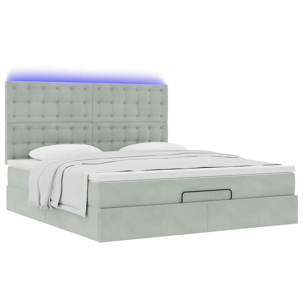Ottoman-Bett mit Matratzen & LEDs Hellgrau 160x200 cm Samt
