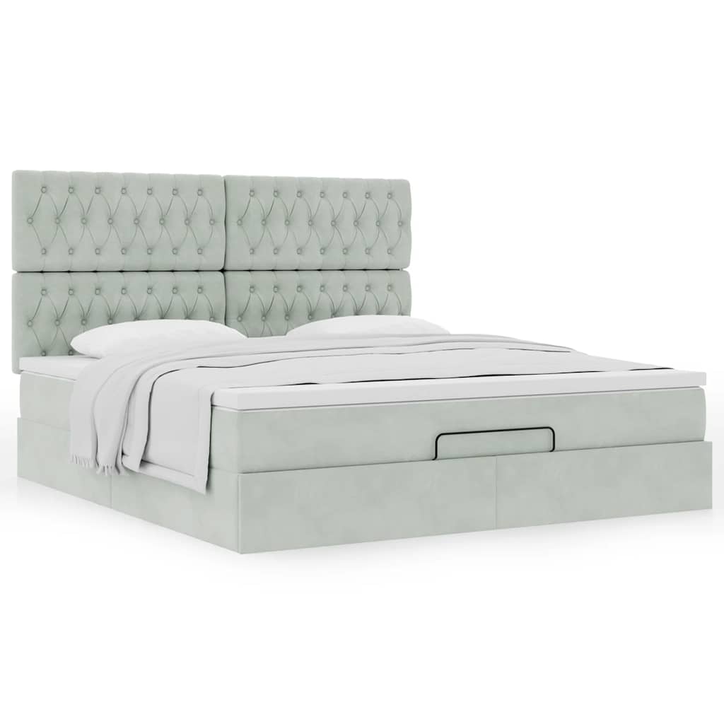 Ottoman-Bett mit Matratzen Hellgrau 160x200 cm Samt