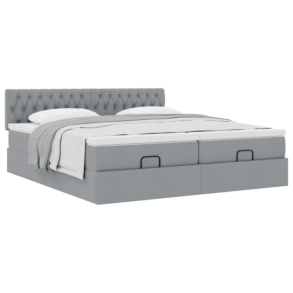 Ottoman-Bett mit Matratzen Hellgrau 200x200 cm Stoff