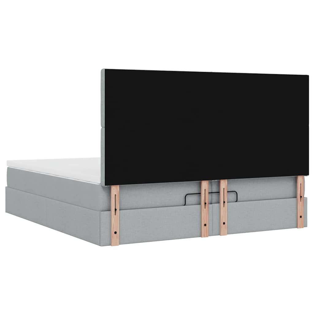 Ottoman-Bett mit Matratzen & LEDs Hellgrau 200x200 cm Stoff