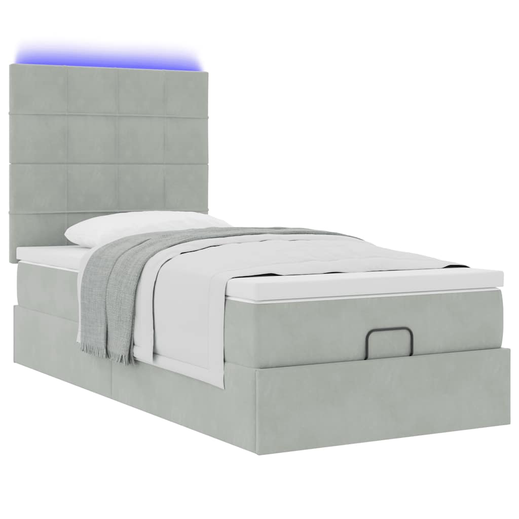 Genieße mit diesem Ottomanbett mit Matratzen eine erholsame Nachtruhe! Es bietet dir sowohl eine Stauraumlösung als auch ein komfortables Schlaferlebnis.Weiches und komfortables Material: Der Samtstoff hat eine weiche und sanfte Oberfläche, die sich angenehm auf der Haut anfühlt und höchsten Komfort bietet.Taschenfederkernmatratze: Diese Matratze hat einzelne Taschenfedern, die unabhängig voneinander arbeiten. Somit bietet sie dir optimalen Halt, indem sie auf Druckstellen in jedem Bereich unabhängig reagieren. Diese Konstruktion verhindert das "Zusammenrollen" und reduziert die Bewegungsübertragung im Vergleich zu alten Federkernmatratzen. Jede Taschenfeder stützt die Körper-Druckstellen individuell.Großer Stauraum unter dem Bett: Dank des hydraulischen Hebemechanismus bietet der Bettrahmen reichlich Stauraum unter dem Bett, sodass der Platz maximiert wird, ohne zusätzliche Bodenfläche zu beanspruchen. Mit einem einfachen Zug am Griff hebt sich der Lattenrost sanft an, sodass du deine Gegenstände schnell und mühelos herausholen kannst.Komfortable Matratzenauflage: Die Auflage verbessert den Halt und den Komfort mit ihrer weichen, atmungsaktiven Oberfläche und verlängert gleichzeitig die Lebensdauer deiner Matratze. Der abnehmbare Bezug ermöglicht ein einfaches Waschen, was die Pflege der Matratze zum Kinderspiel macht.LED-Beleuchtung für ein angenehmes Ambiente: Dieses Bett verfügt über LED-Leuchten, die einfach eingestellt werden können, um eine persönliche Lichtshow zu kreieren. Du kannst die Modi, Farben und Helligkeit anpassen, um das Ambiente in deinem Wohnraum zu verbessern. Gut zu wissen:Das Produkt verfügt über einen USB-Anschluss, für den eine zertifizierte 5V-USB-Stromquelle erforderlich ist (nicht im Lieferumfang enthalten).Aus hygienischen Gründen kann die Matratze nicht zurückgegeben werden, wenn die Verpackung entfernt oder geöffnet wurde.Nur der Teil mit dem Symbol kann geschnitten werden und nur der Teil mit dem USB funktioniert auch weiterhin.
