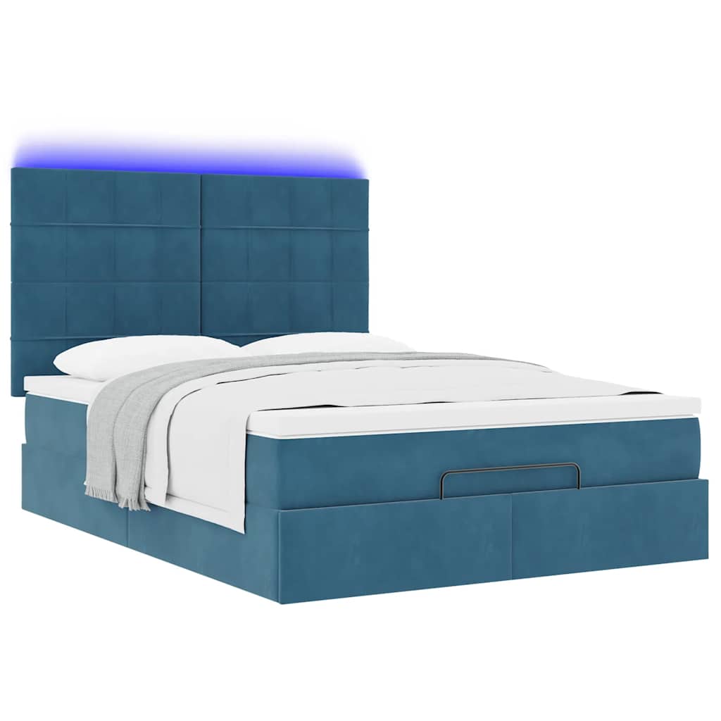 Ottoman-Bett mit Matratzen & LEDs Dunkelblau 140x190 cm Samt