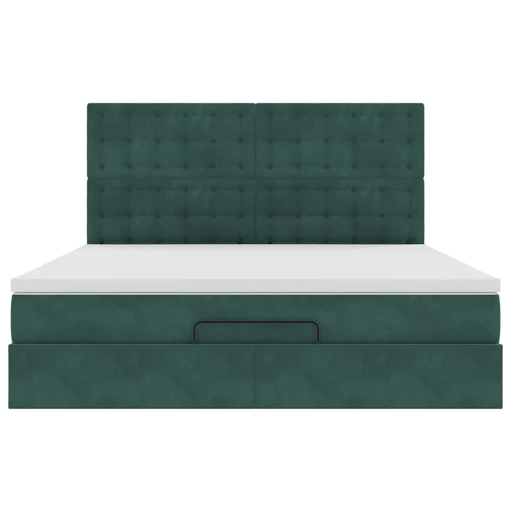 Ottoman-Bett mit Matratzen & LEDs Dunkelgrün 160x200 cm Samt