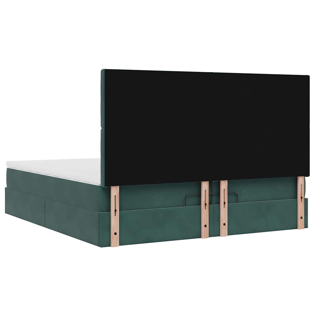 Ottoman-Bett mit Matratzen & LEDs Dunkelgrün 200x200 cm Samt