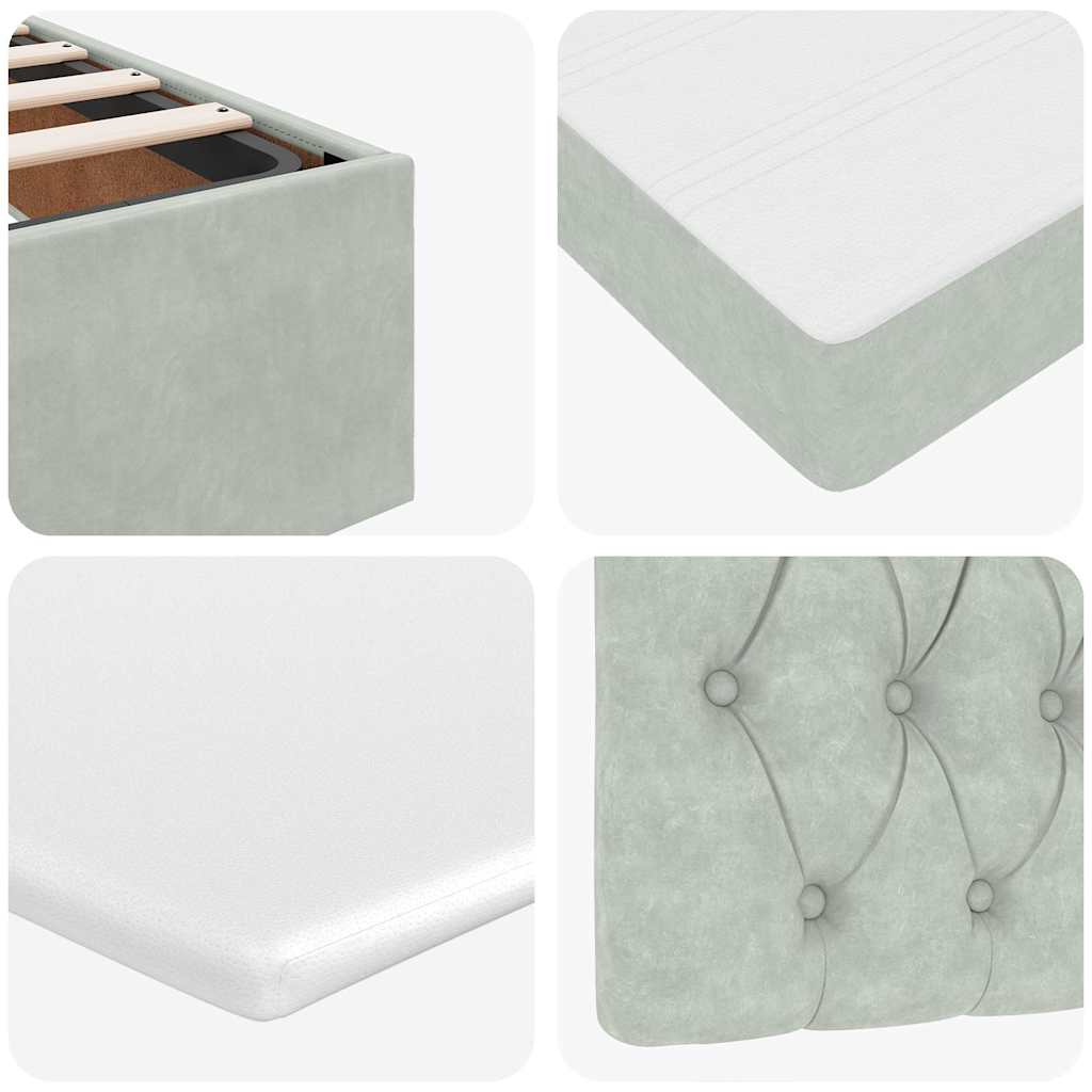 Genieße mit diesem Ottomanbett mit Matratzen eine erholsame Nachtruhe! Es bietet dir sowohl eine Stauraumlösung als auch ein komfortables Schlaferlebnis.Weiches und komfortables Material: Der Samtstoff hat eine weiche und sanfte Oberfläche, die sich angenehm auf der Haut anfühlt und höchsten Komfort bietet.Taschenfederkernmatratze: Diese Matratze hat einzelne Taschenfedern, die unabhängig voneinander arbeiten. Somit bietet sie dir optimalen Halt, indem sie auf Druckstellen in jedem Bereich unabhängig reagieren. Diese Konstruktion verhindert das "Zusammenrollen" und reduziert die Bewegungsübertragung im Vergleich zu alten Federkernmatratzen. Jede Taschenfeder stützt die Körper-Druckstellen individuell.Großer Stauraum unter dem Bett: Dank des hydraulischen Hebemechanismus bietet der Bettrahmen reichlich Stauraum unter dem Bett, sodass der Platz maximiert wird, ohne zusätzliche Bodenfläche zu beanspruchen. Mit einem einfachen Zug am Griff hebt sich der Lattenrost sanft an, sodass du deine Gegenstände schnell und mühelos herausholen kannst.Komfortable Matratzenauflage: Die Auflage verbessert den Halt und den Komfort mit ihrer weichen, atmungsaktiven Oberfläche und verlängert gleichzeitig die Lebensdauer deiner Matratze. Der abnehmbare Bezug ermöglicht ein einfaches Waschen, was die Pflege der Matratze zum Kinderspiel macht.LED-Beleuchtung für ein angenehmes Ambiente: Dieses Bett verfügt über LED-Leuchten, die einfach eingestellt werden können, um eine persönliche Lichtshow zu kreieren. Du kannst die Modi, Farben und Helligkeit anpassen, um das Ambiente in deinem Wohnraum zu verbessern. Gut zu wissen:Das Produkt verfügt über einen USB-Anschluss, für den eine zertifizierte 5V-USB-Stromquelle erforderlich ist (nicht im Lieferumfang enthalten).Aus hygienischen Gründen kann die Matratze nicht zurückgegeben werden, wenn die Verpackung entfernt oder geöffnet wurde.Nur der Teil mit dem Symbol kann geschnitten werden und nur der Teil mit dem USB funktioniert auch weiterhin.