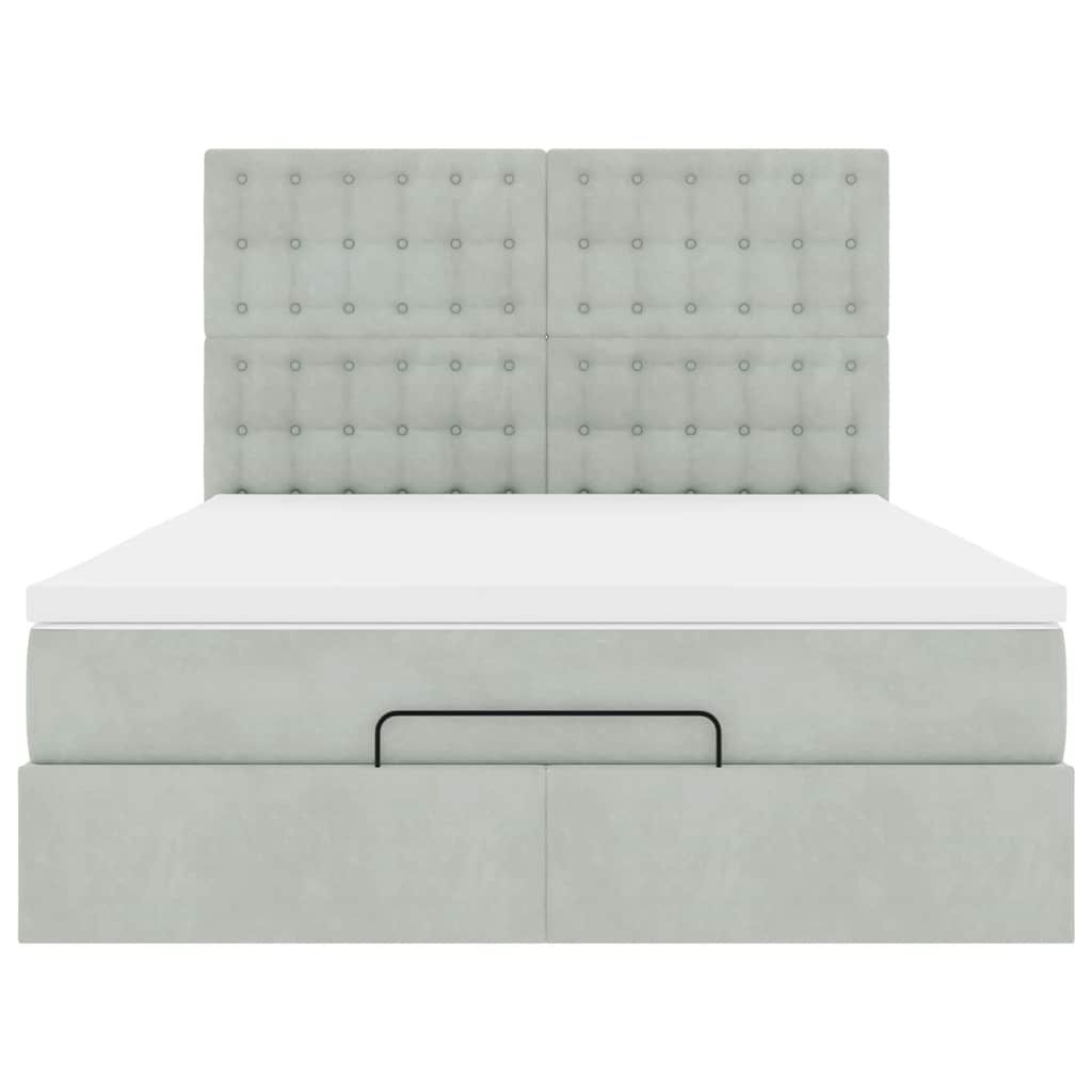 Ottoman-Bett mit Matratzen & LEDs Hellgrau 140x190 cm Samt