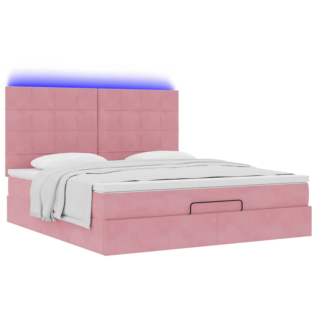 Ottoman-Bett mit Matratzen & LEDs Rosa 160x200 cm Samt