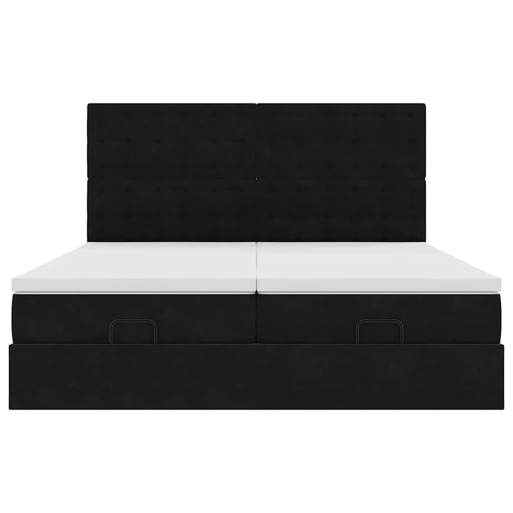 Genieße mit diesem Ottomanbett mit Matratzen eine erholsame Nachtruhe! Es bietet dir sowohl eine Stauraumlösung als auch ein komfortables Schlaferlebnis.Weiches und komfortables Material: Der Samtstoff hat eine weiche und sanfte Oberfläche, die sich angenehm auf der Haut anfühlt und höchsten Komfort bietet.Taschenfederkernmatratze: Diese Matratze hat einzelne Taschenfedern, die unabhängig voneinander arbeiten. Somit bietet sie dir optimalen Halt, indem sie auf Druckstellen in jedem Bereich unabhängig reagieren. Diese Konstruktion verhindert das "Zusammenrollen" und reduziert die Bewegungsübertragung im Vergleich zu alten Federkernmatratzen. Jede Taschenfeder stützt die Körper-Druckstellen individuell.Großer Stauraum unter dem Bett: Dank des hydraulischen Hebemechanismus bietet der Bettrahmen reichlich Stauraum unter dem Bett, sodass der Platz maximiert wird, ohne zusätzliche Bodenfläche zu beanspruchen. Mit einem einfachen Zug am Griff hebt sich der Lattenrost sanft an, sodass du deine Gegenstände schnell und mühelos herausholen kannst.Komfortable Matratzenauflage: Die Auflage verbessert den Halt und den Komfort mit ihrer weichen, atmungsaktiven Oberfläche und verlängert gleichzeitig die Lebensdauer deiner Matratze. Der abnehmbare Bezug ermöglicht ein einfaches Waschen, was die Pflege der Matratze zum Kinderspiel macht. Gut zu wissen:Dieses Doppelbett besteht aus zwei Einzelbetten, sodass jeder Lattenrost unabhängig voneinander angehoben werden kann.Aus hygienischen Gründen kann die Matratze nicht zurückgegeben werden, wenn die Verpackung entfernt oder geöffnet wurde.