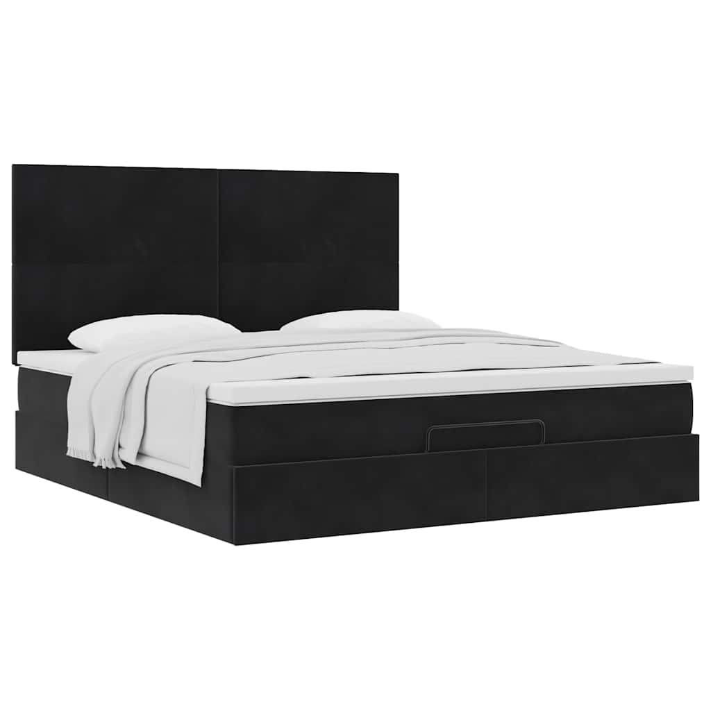 Ottoman-Bett mit Matratzen Schwarz 160x200 cm Samt
