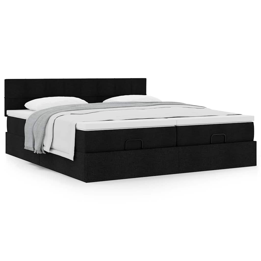 Ottoman-Bett mit Matratzen Schwarz 180x200 cm Stoff