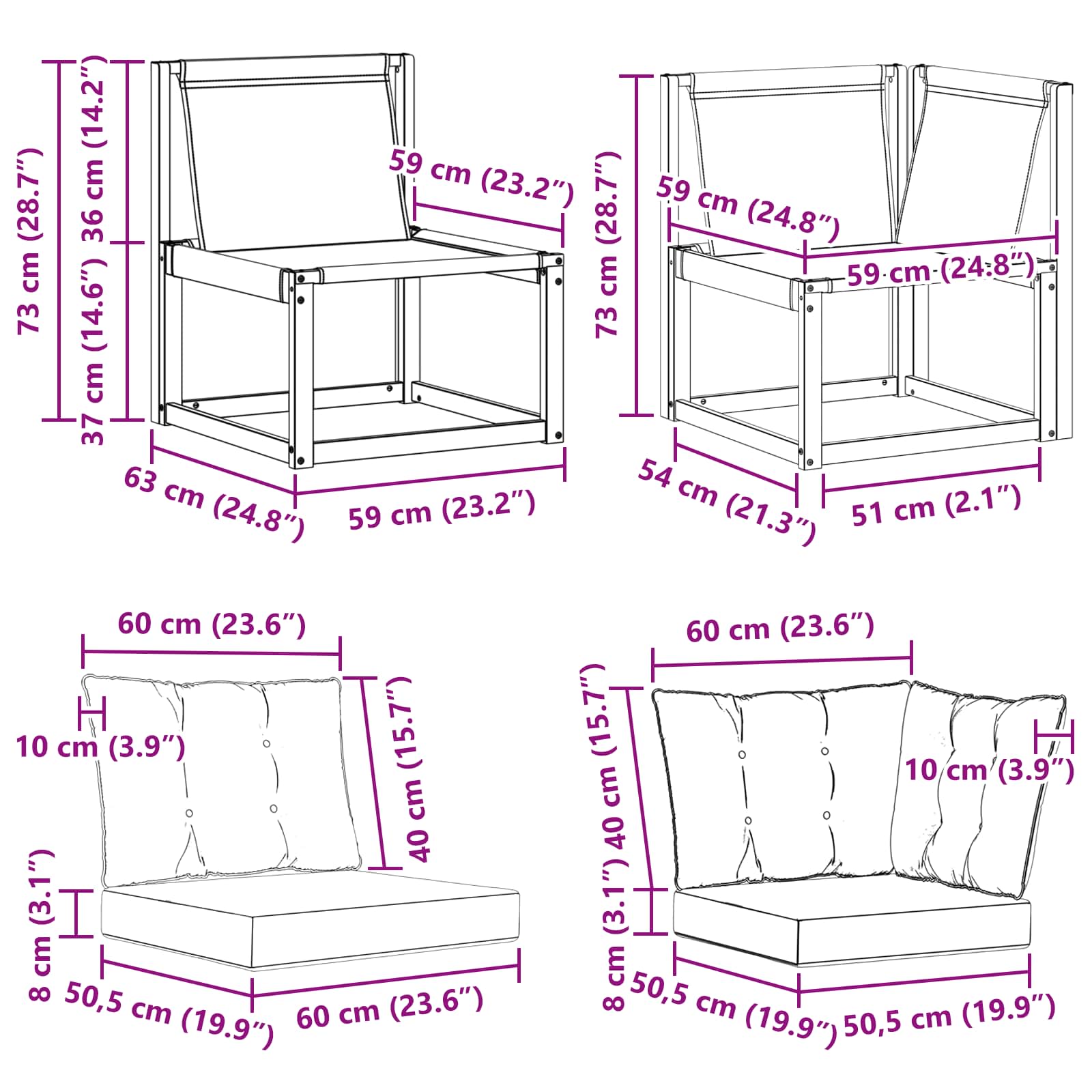 Outdoor Mittel- und Ecksofa mit Kissen 3 Stück Natur