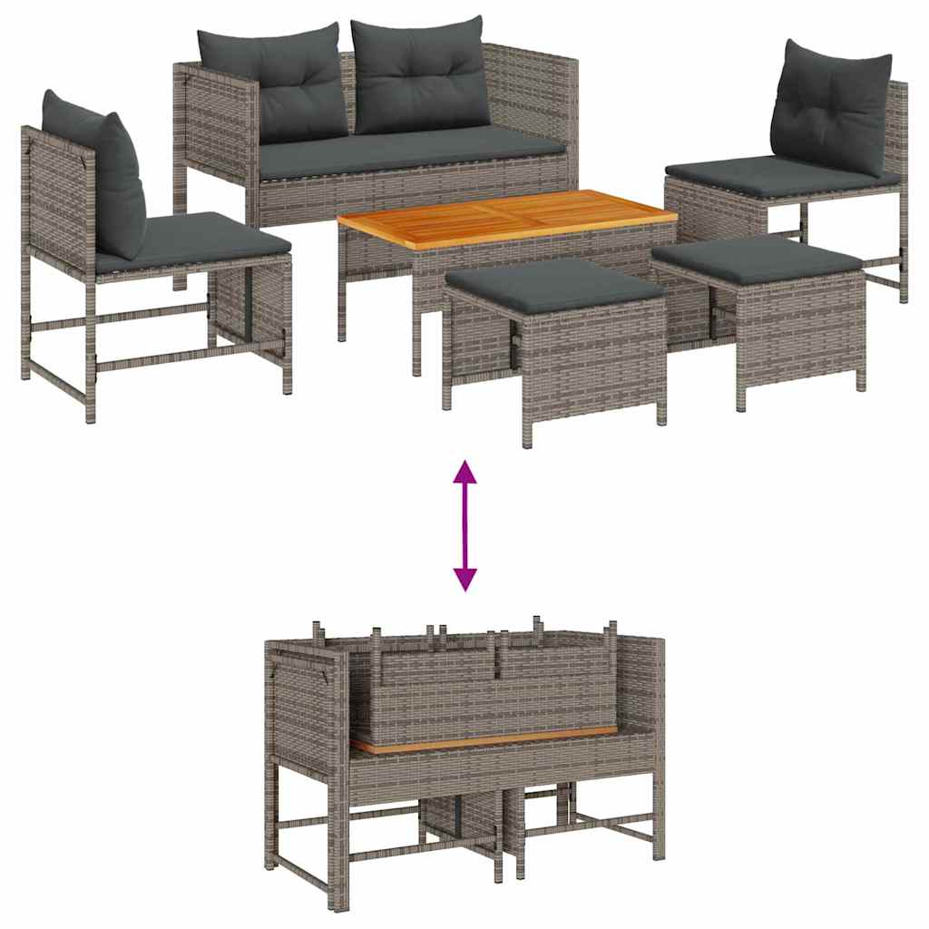 Dieses moderne Outdoor-Sofa-Set bringt eine entspannte Stimmung in deine Outdoor-Veranstaltungen. Es ist perfekt, um entspannt abzuhängen oder Freunde zu bewirten. Das stylische Grau und Dunkelgrau Design zusammen mit den bequemen Kissen machen es zum perfekten Mittelpunkt für deinen Balkon oder deine Terrasse – ideal, um das Wetter zu genießen. Stylisches Design: Die klaren Linien und das moderne Aussehen dieses Sets bringen Leben in jeden Außenbereich, perfekt für gesellige Runden und entspannte Momente. Die Grautöne passen super zu jedem zeitgemäßen Dekor. Bequeme Sitze: Mit kuscheligen Kissen an jedem Platz verspricht dieses Sofa-Set Entspannung für alle. Jedes Kissen ist schön gefüllt, um ein weiches, aber stützendes Gefühl zu geben – ideal für lange Gespräche. Robuste Konstruktion: Hergestellt aus hochwertigem Rattan und pulverbeschichtetem Stahl, ist dieses Set für die Elemente gemacht und bleibt dabei attraktiv. Die strukturierte Oberfläche verstärkt Stil und Haltbarkeit. Einfach zu reinigen: Abnehmbare Kissenbezüge mit Reißverschlüssen machen die Reinigung super einfach. Wisch die Rattanflecken einfach ab, damit alles frisch bleibt. Vielseitige Funktionalität: Ideal für verschiedene Außenbereiche, von Patios bis Balkonen, bietet dieses Set Platz für bis zu fünf Personen. Nutze es zum Essen, Entspannen oder einfach, um stilvoll die Natur zu genießen.