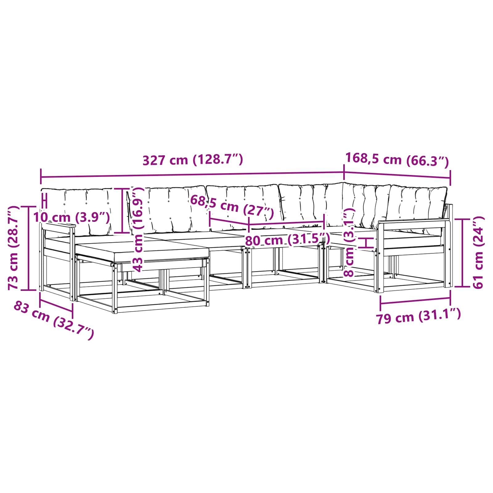 - 6 x Rückenkissen: 80 x 43 x 10 cm (LxBxH)