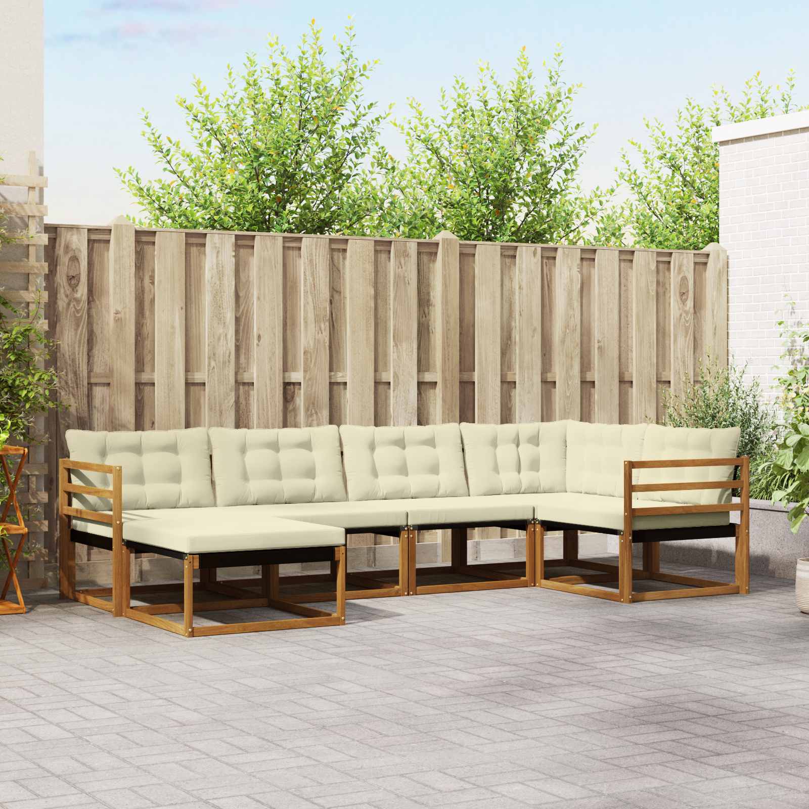 Dieses langlebige Outdoor-Sofa-Set ist die perfekte Mischung aus Komfort und Stil, designed um dein Freizeiterlebnis draußen zu verbessern. Mit modernem Look sorgt das Set für eine einladende Atmosphäre in deinem Garten oder auf der Terrasse. Der Rahmen aus massivem Akazienholz bringt zeitlosen Charme und ist ideal für alle, die die Wärme und den Charakter von echtem Holz lieben. Ob für eine Feier oder einen ruhigen Nachmittag, dieses Set bietet sowohl Stil als auch Praktikabilität und hält Wind und Wetter stand, während es für eine entspannte Umgebung sorgt. Natürliche Holzstruktur: Der rahmen aus massivem Akazienholz bringt einen natürlichen Charme, der super in jeden Garten oder auf jede Terrasse passt. Diese robuste Grundlage sorgt nicht nur für Stabilität, sondern verleiht deinem Außenbereich auch einen Hauch von Eleganz, sodass jede Zusammenkunft zu einem entspannten Erlebnis wird. Farbechte Stoffe: Das Textilene auf den Sitz- und Rückenkissen ist bekannt dafür, seine Farben auch bei Sonnenschein zu behalten. Du kannst dich auf dieses hochwertige Material verlassen, das Farben erhält und weniger Sorgen über stärkere Sonneneinstrahlung macht. Unterstützende Rückenlehne: Entworfen, um bequem zu stützen, lindert die Rückenlehne Verspannungen während langer Entspannungsphasen. Ihr durchdachtes Design sorgt für ergonomischen Komfort, sodass deine Freizeit wirklich entspannend ist. Praktische Armlehne: Aus massivem Akazienholz gefertigt, bringen die Armlehnen sowohl Schönheit als auch Funktion, ideal um die Arme abzulegen oder Drinks abzustellen. Einfache Reinigung: Wische die Kissen und Oberflächen mit einer einfachen Bewegung ab, dank der schmutzresistenten Materialien. So bleibt dein Sofa-Set frisch und einladend mit minimalem Aufwand.