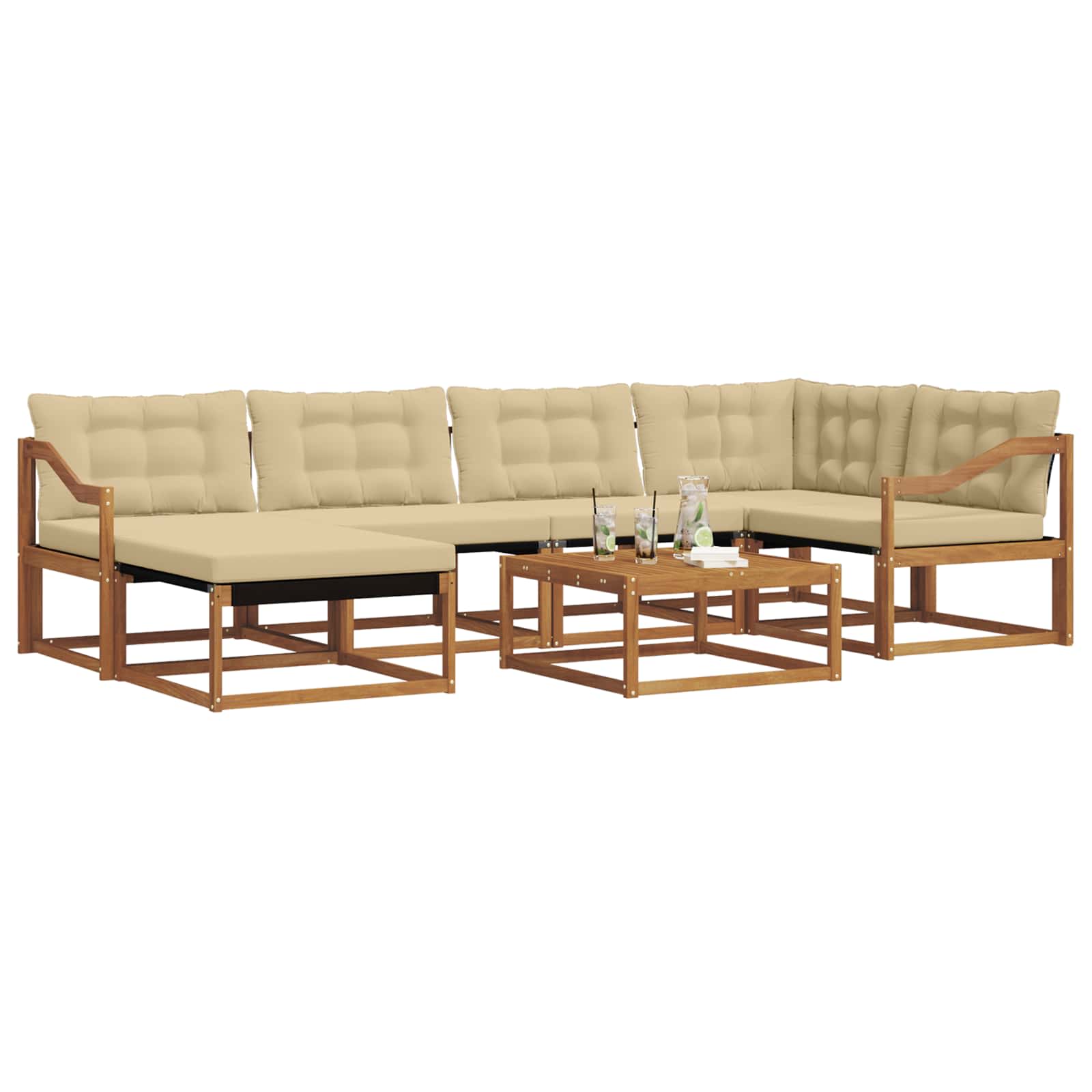 Dieses Garten-Sofa-Set verleiht jedem Garten oder jeder Terrasse einen modernen Touch und vereint Stil und Langlebigkeit. Es ist perfekt für den Außenbereich und bietet Platz für mehrere Personen, wodurch es zum Mittelpunkt jeder Zusammenkunft wird. Massivholz Akazie: Dieses Material hebt die Optik des Sets hervor und sorgt für eine lange Haltbarkeit, selbst bei unterschiedlichen Wetterbedingungen. Die natürlichen Holzfarben passen super in jedes Außendesign und machen das Set zu einer zeitlosen Ergänzung für deinen Garten oder deine Terrasse. Es hält viel aus, sodass du sowohl lebhafte Treffen als auch ruhige Zeiten genießen kannst. Integrierte Komponenten: Das Sofa hat bequeme Armlehnen und einen stabilen Rahmen aus massivem Akazienholz. Die Kissen mit Schaumstofffüllung und das Textilene-Rückenmaterial geben dir dauerhaften Komfort. Die abnehmbaren Sitzkissen mit Reißverschluss sorgen für leichten Komfort und einfache Pflege. Funktionale Merkmale: Dieses Set ist für den Außenbereich designt, lichtbeständig und lässt sich einfach abwischen, damit es immer frisch bleibt. Die unterstützende Rückenlehne hilft einer guten Haltung während des Entspannens. Die praktischen Armlehnen machen das Lounge-Erlebnis noch entspannter. Vielseitige Verwendung: Dieses Sofa passt perfekt in jedem Gartenmöbel-Set. Nutze es, um Gäste zu bewirten, für Tee-Partys oder um einen entspannten Abend mit einem Buch zu genießen. Sein Design passt super zu modernen Räumen und macht es zu einer perfekten Wahl für stylische Nachmittage im Freien. Einfache Pflege: Um den Look zu erhalten, wische einfach mit einem feuchten Tuch drüber. Diese pflegeleichte Routine hält das Sofa-Set zu jeder Jahreszeit frisch und einladend. Schütze deine Investition ins Outdoor-Leben und genieße einen langanhaltenden Begleiter in deinem Garten.