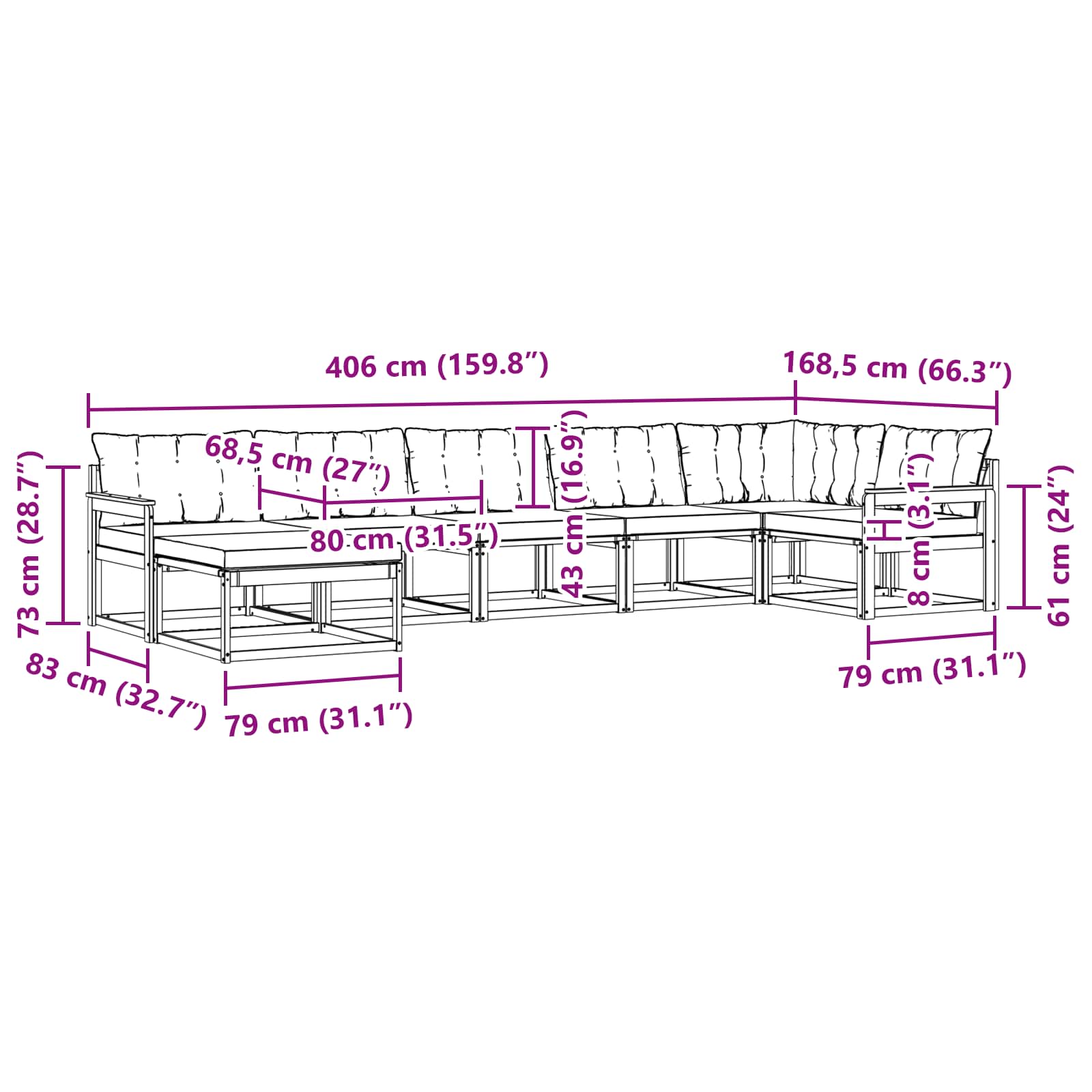 - 7 x Rückenkissen: 80 x 43 x 10 cm (LxBxH)