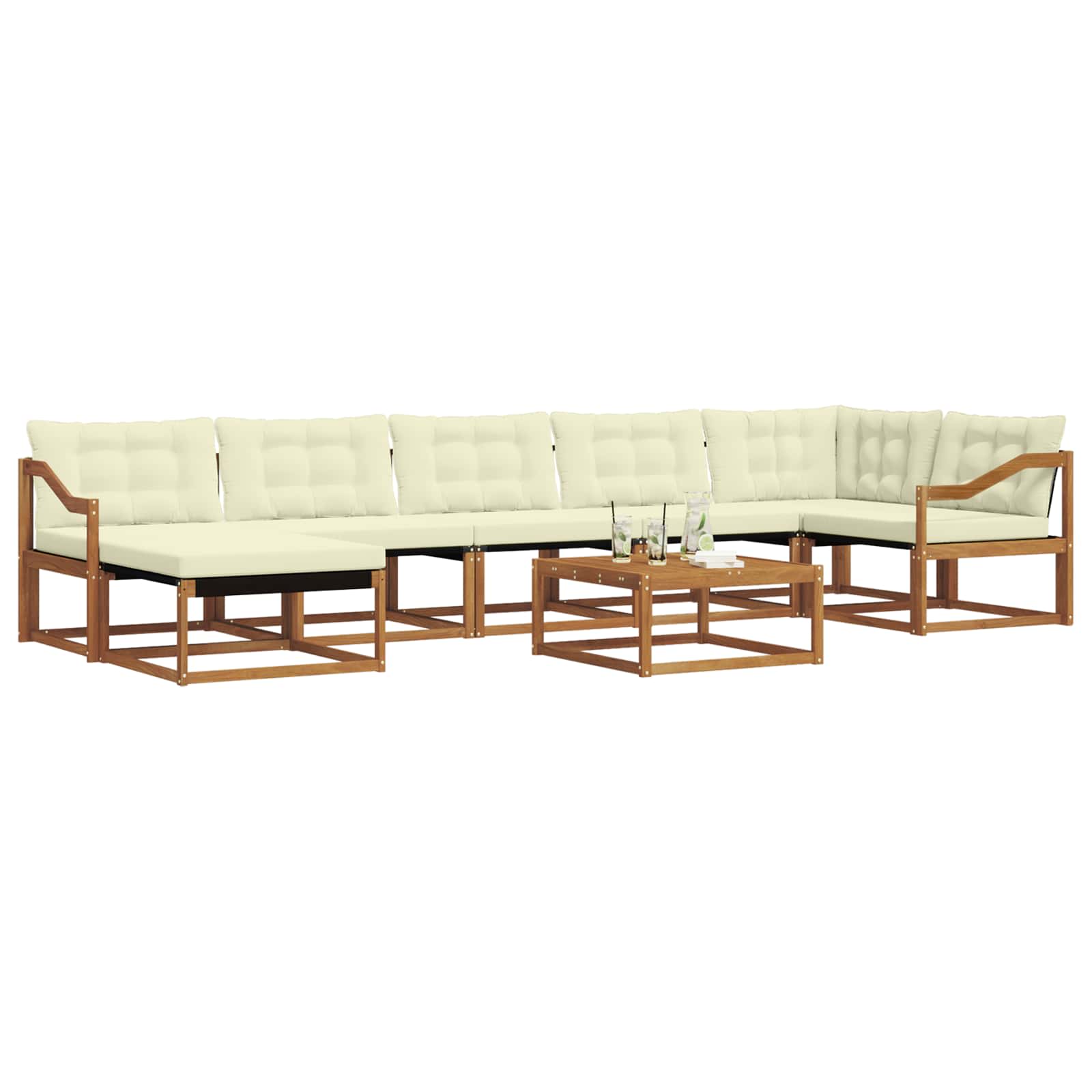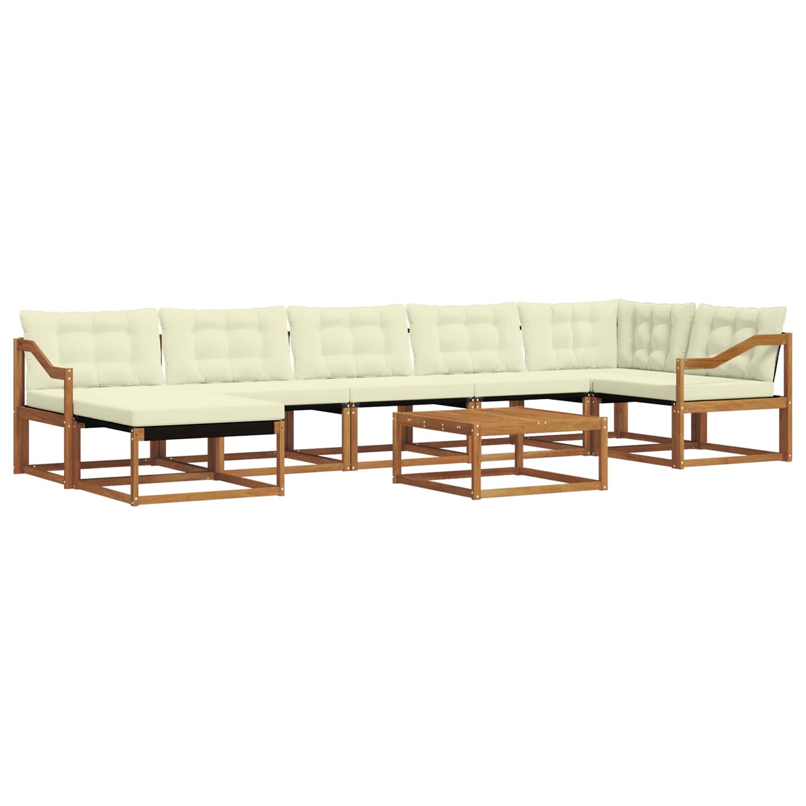 Dieses moderne Sofaset für draußen ist super, um deinen Garten oder Balkon aufzuwerten und bringt Eleganz und Funktionalität zusammen. Das stylische Design spiegelt den zeitgenössischen Stil wider und die natürlichen Holzstrukturen schaffen eine warme, einladende Atmosphäre, ideal für Familienfeiern oder entspannende Momente allein. Mit seinem braunen Finish und ergonomischen Details fügt es sich mühelos in jedes Outdoor-Setting ein und vereint Natur und Stil. Materialien: Hergestellt aus solidem Akazienholz, ist dieses Outdoor-Sofaset aus langlebigem Holz, das wegen seiner Wetterbeständigkeit und schönen Optik ausgewählt wurde. Seine auffällige Maserung und Robustheit machen es zu einer perfekten Wahl für jeden Außenbereich. Inklusive Komponenten: Das Set kommt mit einem bequemen Sitz, einer Rückenlehne und stabilen Armlehnen aus Textilene und massivem Akazienholz. Die Armlehnen bieten Unterstützung für entspanntes Sitzen, während die atmungsaktive Textilene-Rückenlehne und das abnehmbare Kissen zusätzlichen Komfort und einfache Pflege gewährleisten. Funktionen / Funktion / Design: Die farb- und schmutzabweisenden Materialien lassen das Set auch nach längerer Sonneneinstrahlung frisch aussehen. Die leicht abwischbare Oberfläche reduziert den Pflegeaufwand, sodass du mehr Zeit für Freizeitaktivitäten hast. Mit der unterstützenden Rückenlehne und dem dick gepolsterten Kissen ist der Komfort auf dem Sofa unübertroffen, sodass Gäste bei deinen Zusammenkünften entspannen können. Empfohlene Anwendungen: Perfekt für Garten und Terrasse, verwandelt dieses Sofaset Außenbereiche in gemütliche Rückzugsorte für lockere Treffen oder persönliche Entspannung. Sein modernes Design passt zu verschiedenen Außenstilen und bietet ohne Kompromisse Funktionalität und Stil, sei es beim Unterhalten oder Relaxen. Pflege & Wartung: Wische das Set regelmäßig mit einem feuchten Tuch ab, damit es lange schön bleibt. Die Kissen sind dank ihrer Reißverschlussöffnungen einfach zu pflegen – man kann sie problemlos reinigen oder Flecken behandeln. Gute Pflege sorgt dafür, dass die Qualität erhalten bleibt und das Set frisch und einladend aussieht.