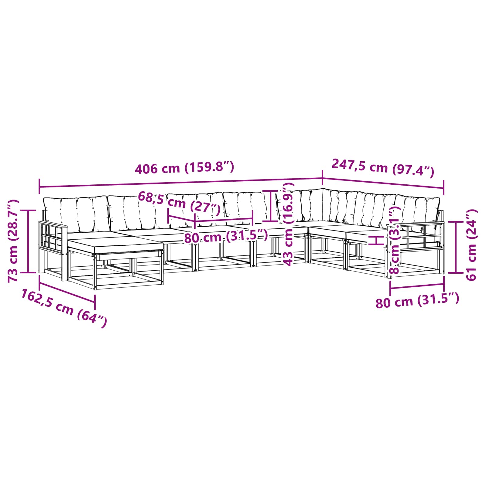 - 8 x Rückenkissen: 80 x 43 x 10 cm (LxBxH)