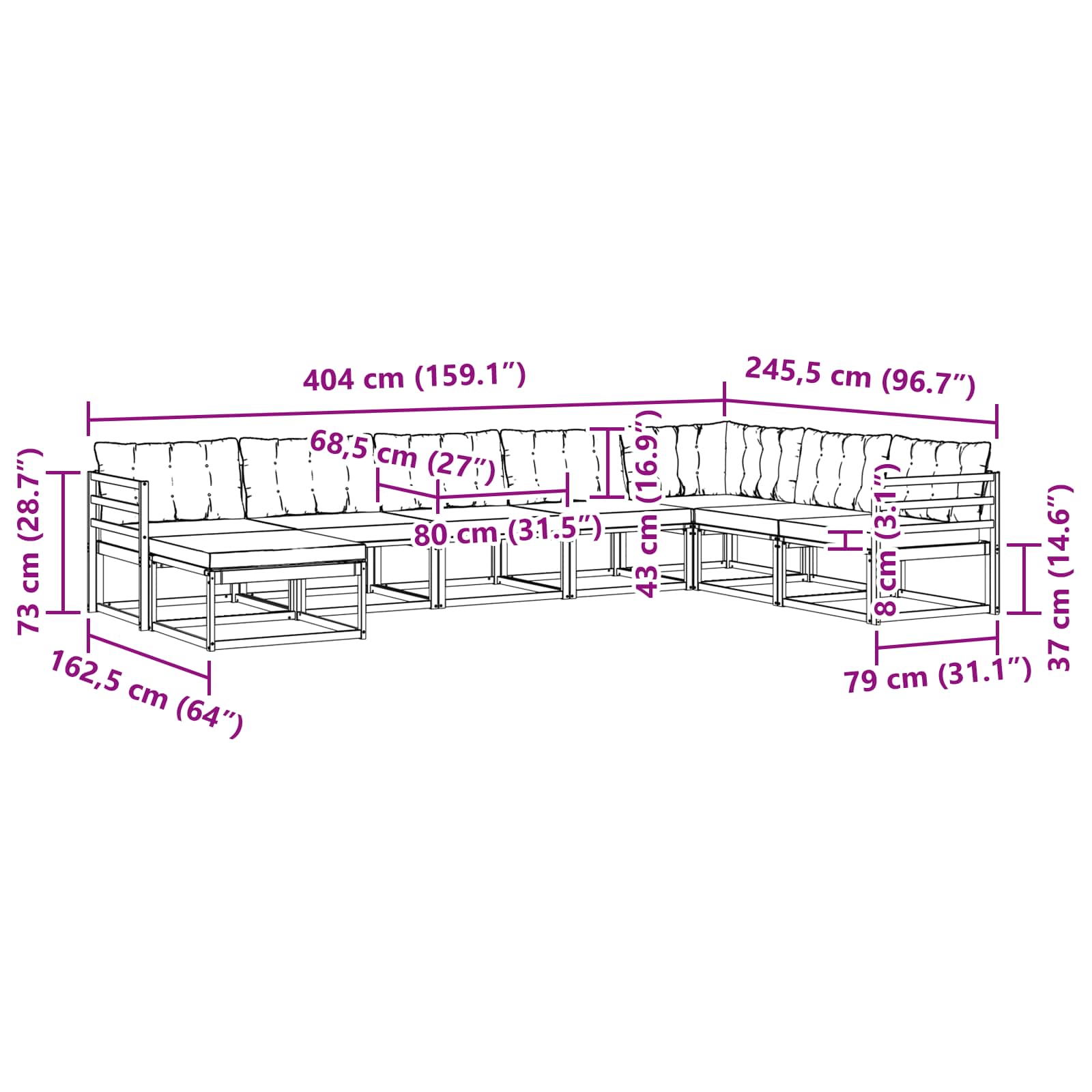 - 8 x Rückenkissen: 80 x 43 x 10 cm (LxBxH)