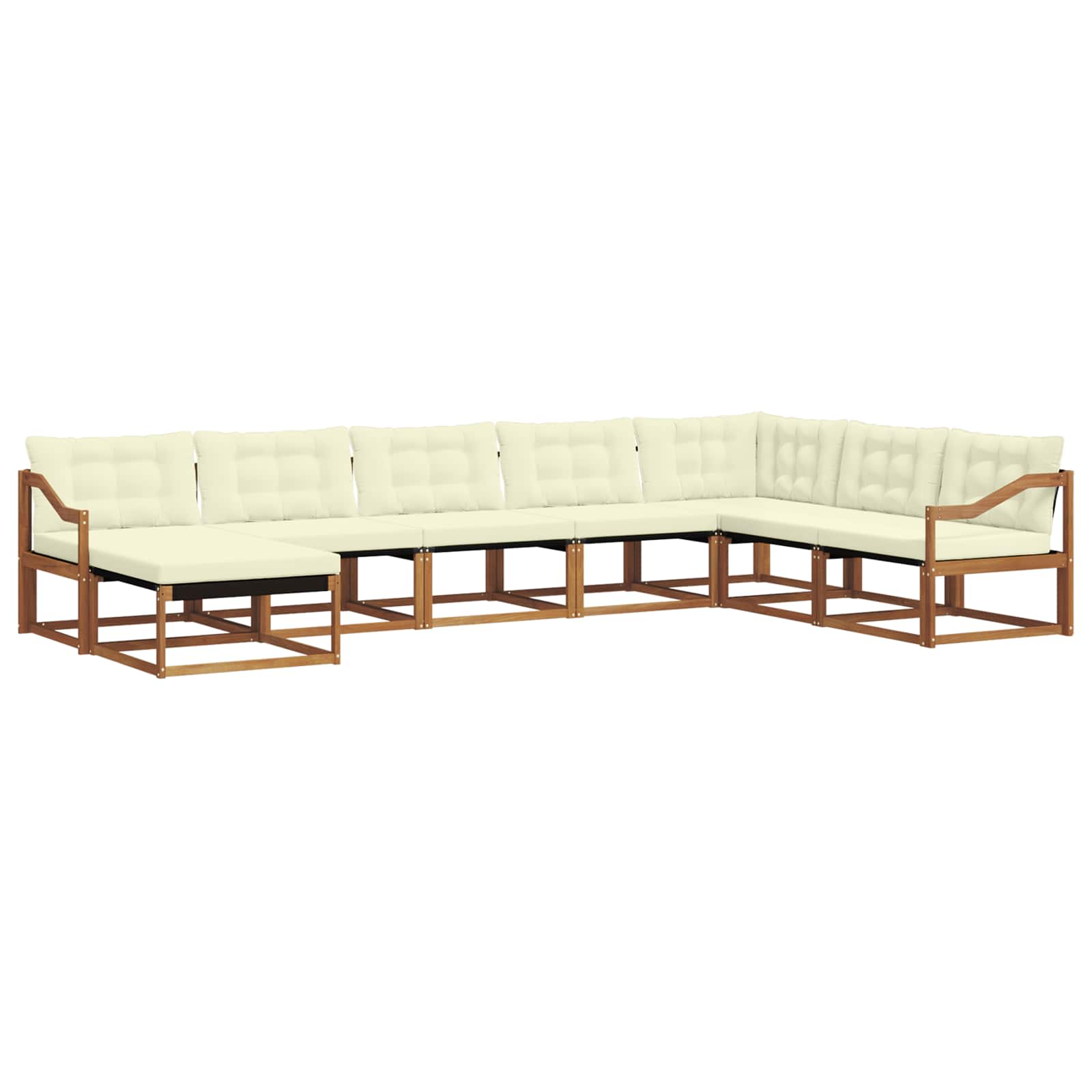 Dieses moderne Sofa-Set besteht aus solidem Akazienholz und bringt den perfekten Mix aus robuster Optik, Komfort und Eleganz, speziell für draußen. Sein zeitgemäßer Stil harmoniert ideal mit natürlichen Holzoberflächen und schafft eine einladende Atmosphäre für gesellige Abende oder einfach zum Entspannen. Hochwertige Materialien: Dieses Sofa-Set aus solidem Akazienholz zeigt echt gute Handwerkskunst und hält den Außenbedingungen stand. Das robuste Holz und die Textilene-Elemente sorgen für Langlebigkeit und wenig Pflegeaufwand – ideal für entspannte Stunden draußen. Enthaltene Komponenten: Der stabile Rahmen wird ergänzt durch Textilene-Sitze und -Rücken, die sowohl Halt als auch Komfort bieten. Genieße die durchdachten Armlehnen aus Akazienholz, die das Design und den Komfort perfekt verbinden. Die Outdoor-Kissen mit abnehmbaren Bezügen sorgen für extra Gemütlichkeit. Funktionale Merkmale: Das ergonomische Design der Rückenlehne sorgt für langanhaltenden Komfort, auch bei längeren Feiern draußen. Die ergonomischen Armlehnen unterstützen eine angenehme Haltung und tragen zu einer chilligen Atmosphäre bei, die unvergessliche Momente im Freien schafft. Empfohlene Anwendungen: Ob im lockeren Garten-Lounge-Bereich oder bei einer festlichen Terrasse-Feier – das Sofa-Set bietet die perfekte Kulisse für persönliche Geschichten draußen. Es passt super zu ruhigen Familienabenden oder lebhaften Partys. Pflege & Wartung: Halte dieses schicke Outdoor-Set frisch, indem du es regelmäßig mit einem feuchten Tuch abwischst, um Schmutz zu entfernen und sicherzustellen, dass es strahlt. So hältst du die Lebensdauer deiner Gartenmöbel aufrecht.