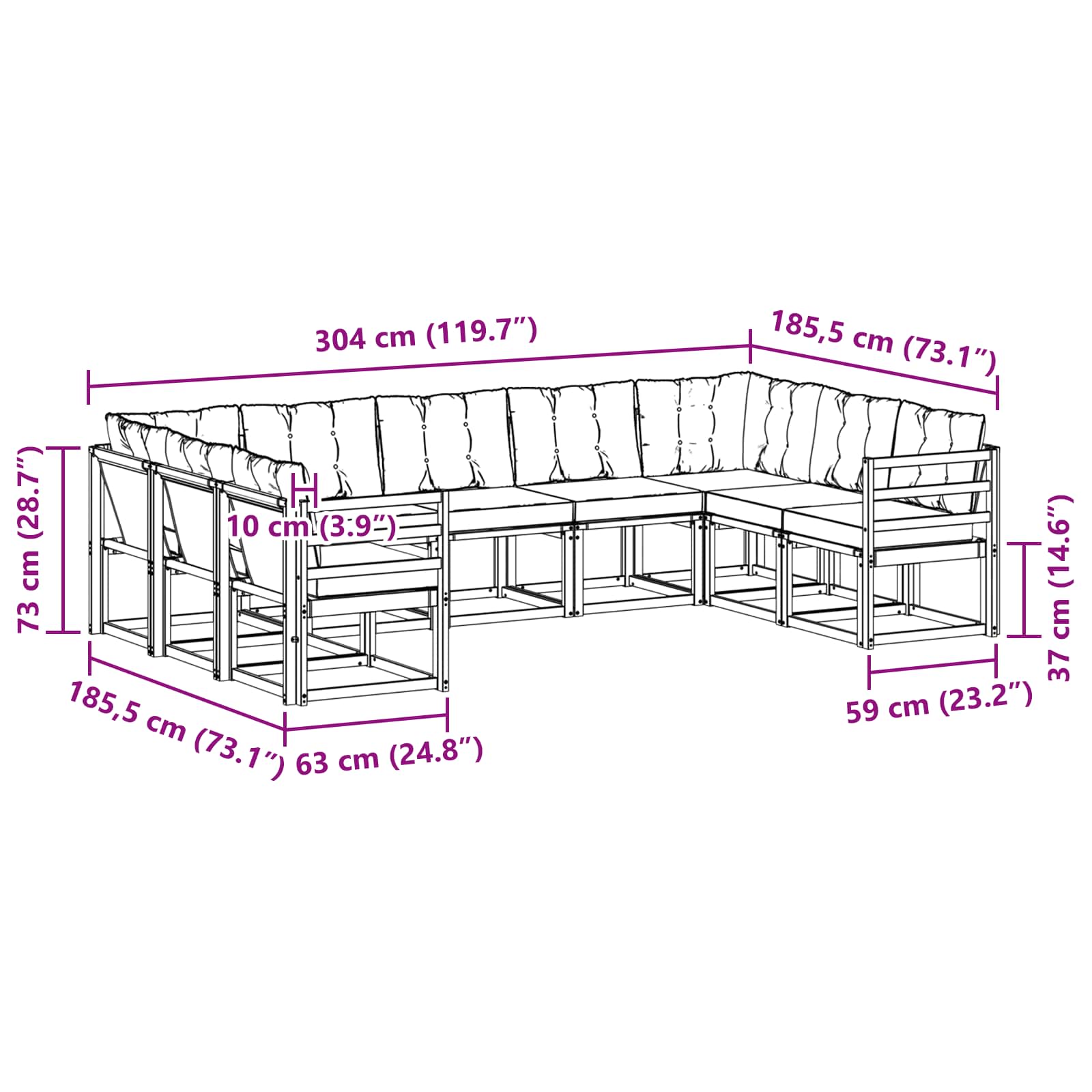 - Gesamtabmessungen: 304 x 185,5 x 73 cm (L x B x H)