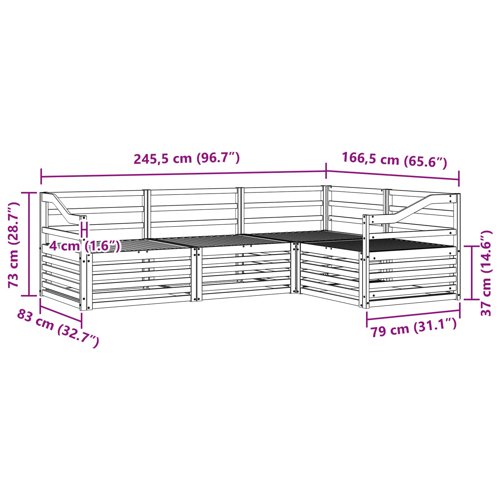 - Gesamtabmessungen: 245,5 x 166,5 x 73 cm (L x B x H)