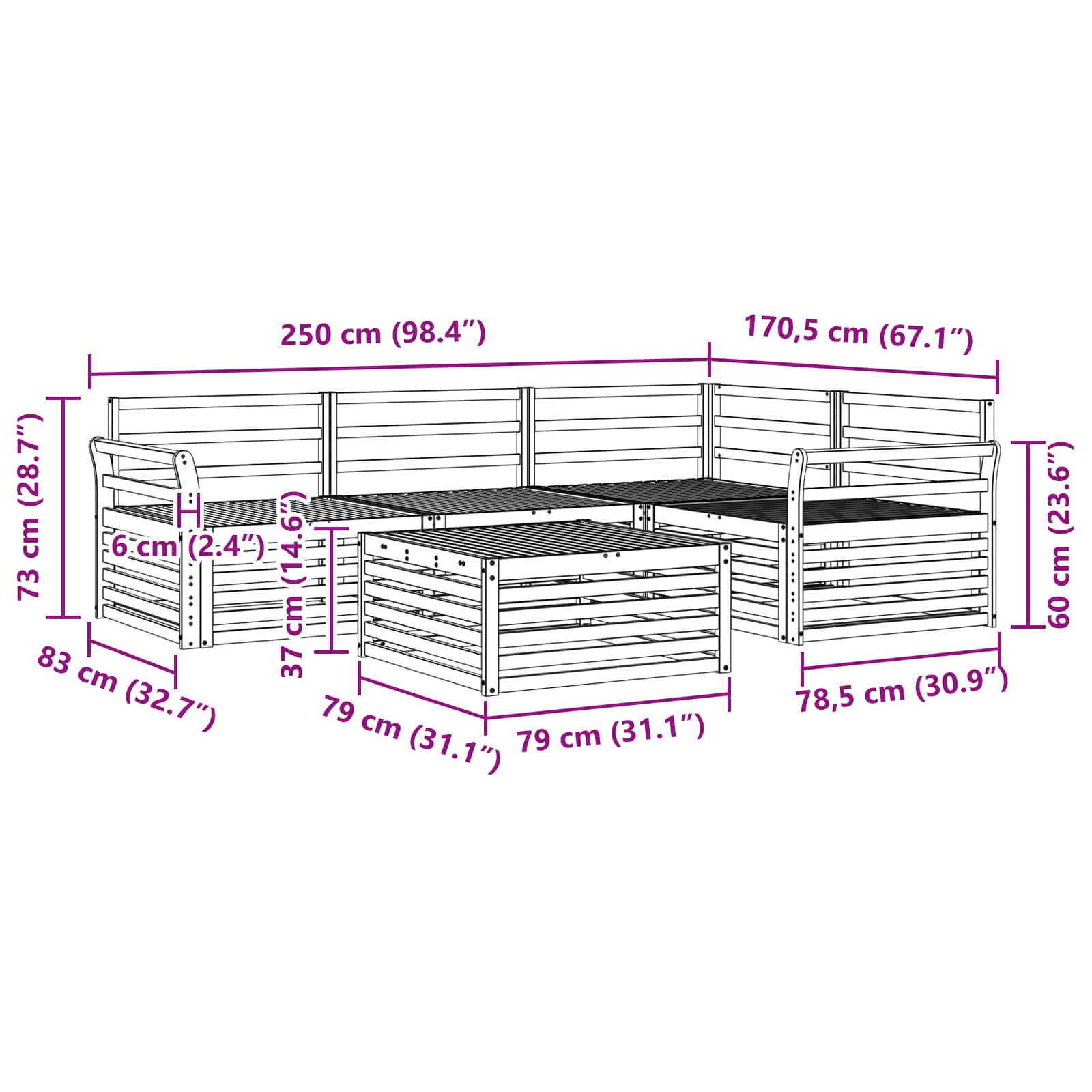 - Gesamtabmessungen: 79 x 79 x 37 cm (L x B x H)
