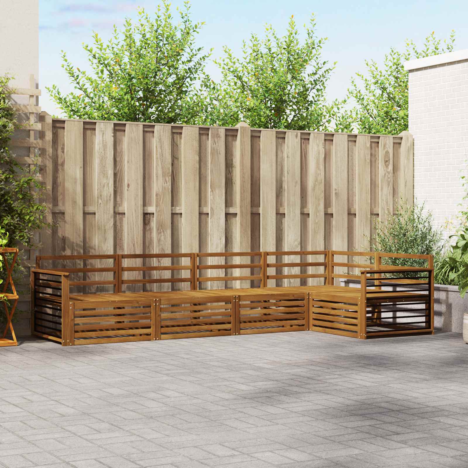 Das Outdoor-Möbelset vereint Stil und Funktion und wird zum Hingucker in deinem Garten oder auf der Terrasse. Das moderne Design mit klaren Linien sorgt für Eleganz und lädt ein, draußen zu entspannen und die Gesellschaft zu genießen. Voll aus massivem Akazienholz gefertigt, bietet das Set Langlebigkeit und macht es zur perfekten Wahl für alle, die praktische und stylische Möbel für draußen suchen. Langlebiges Massivholz Akazie: Aus massivem Akazienholz gefertigt, ist dieses Outdoor-Möbelset für seine Langlebigkeit und Wetterbeständigkeit bekannt. Die robuste Bauweise bietet zuverlässigen Halt und lange Stabilität, während der warme Holzton deinen Garten oder deine Terrasse aufwertet. Wetterbeständiges Design: Mit seiner lackierten Oberfläche bietet das Set zusätzlichen Schutz gegen Sonne, leichten Regen und andere Wettereinflüsse. Der glänzende Finish trägt dazu bei, das Aussehen und die Funktionalität zu erhalten, sodass es ideal für Garten, Terrasse oder Hinterhof bleibt. Komponenten & Design: Jedes Teil, von den Armen bis zu den Rückenlehnen, ist sowohl stilvoll als auch funktional gestaltet. Die Unterstützung sorgt für zusätzlichen Komfort, und das harmonische Design schafft ein tolles Ensemble für verschiedene Outdoor-Anlässe. Komfort & Vielseitigkeit: Das modulare Design erlaubt flexible Konfigurationen und passt sich unterschiedlichen Räumen und Bedürfnissen an. Egal ob für Entspannung, gesellige Zusammenkünfte oder ruhige Lese-Momente, dieses Set passt sich mühelos jeder Umgebung an und maximiert Komfort. Einfache Pflege & Wartung: Halte die Möbel in Top-Zustand, indem du die Oberfläche mit einem feuchten Tuch abwischst und scharfe oder abrasive Reinigungsmittel vermeidest. Regelmäßige Pflege hilft, ihr Aussehen zu bewahren und die Lebensdauer der Möbel zu verlängern.