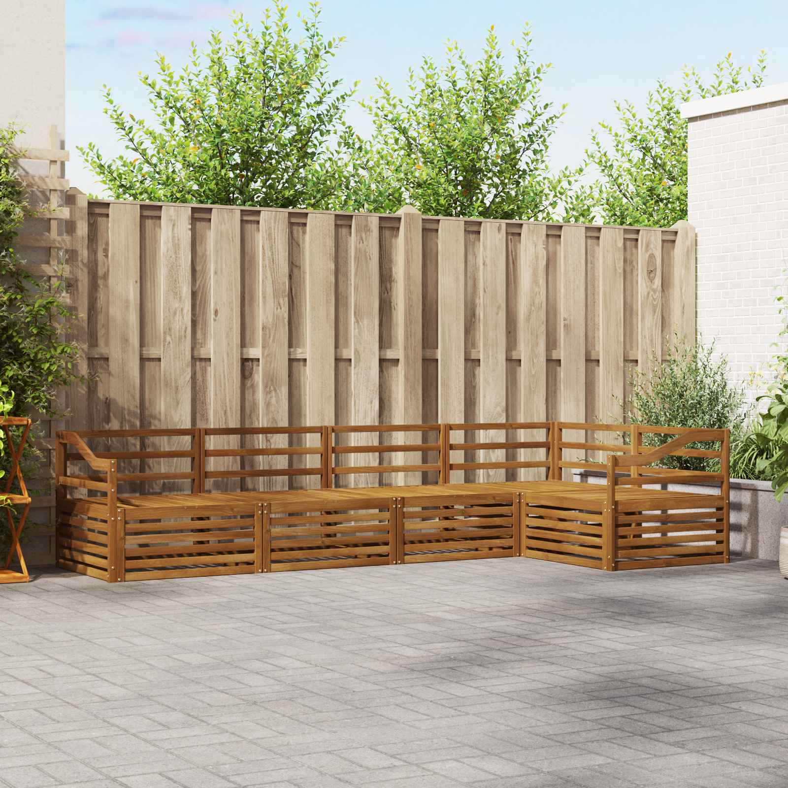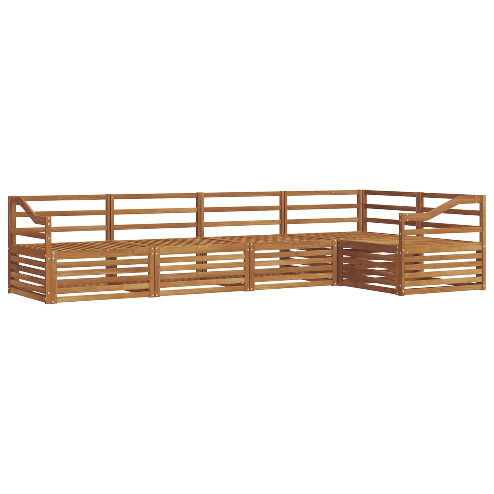 Das Outdoor-Möbelset vereint Stil und Funktion und wird zum Hingucker in deinem Garten oder auf der Terrasse. Das moderne Design mit klaren Linien sorgt für Eleganz und lädt ein, draußen zu entspannen und die Gesellschaft zu genießen. Voll aus massivem Akazienholz gefertigt, bietet das Set Langlebigkeit und macht es zur perfekten Wahl für alle, die praktische und stylische Möbel für draußen suchen. Langlebiges Massivholz Akazie: Aus massivem Akazienholz gefertigt, ist dieses Outdoor-Möbelset für seine Langlebigkeit und Wetterbeständigkeit bekannt. Die robuste Bauweise bietet zuverlässigen Halt und lange Stabilität, während der warme Holzton deinen Garten oder deine Terrasse aufwertet. Wetterbeständiges Design: Mit seiner lackierten Oberfläche bietet das Set zusätzlichen Schutz gegen Sonne, leichten Regen und andere Wettereinflüsse. Der glänzende Finish trägt dazu bei, das Aussehen und die Funktionalität zu erhalten, sodass es ideal für Garten, Terrasse oder Hinterhof bleibt. Komponenten & Design: Jedes Teil, von den Armen bis zu den Rückenlehnen, ist sowohl stilvoll als auch funktional gestaltet. Die Unterstützung sorgt für zusätzlichen Komfort, und das harmonische Design schafft ein tolles Ensemble für verschiedene Outdoor-Anlässe. Komfort & Vielseitigkeit: Das modulare Design erlaubt flexible Konfigurationen und passt sich unterschiedlichen Räumen und Bedürfnissen an. Egal ob für Entspannung, gesellige Zusammenkünfte oder ruhige Lese-Momente, dieses Set passt sich mühelos jeder Umgebung an und maximiert Komfort. Einfache Pflege & Wartung: Halte die Möbel in Top-Zustand, indem du die Oberfläche mit einem feuchten Tuch abwischst und scharfe oder abrasive Reinigungsmittel vermeidest. Regelmäßige Pflege hilft, ihr Aussehen zu bewahren und die Lebensdauer der Möbel zu verlängern.